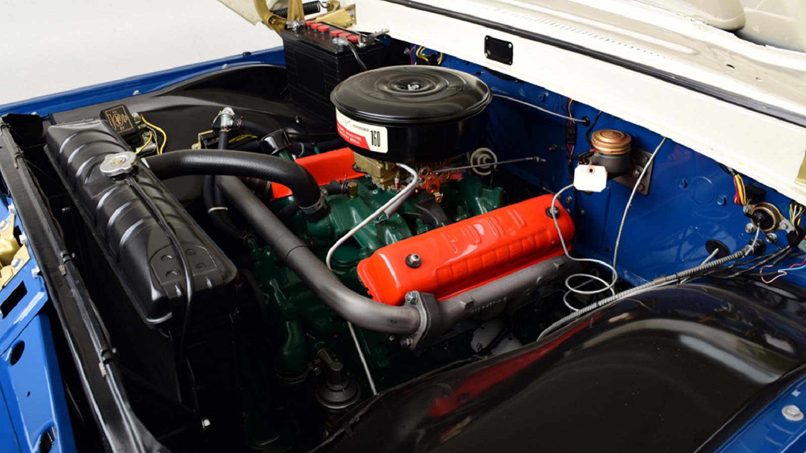 Also unlike many trucks, we come across, that level of perfection is present no matter where you look. Lift the hood, and you'll find a stunningly correct engine bay packing the original 292 cubic-inch V8. Everything, from the hose clamps to the battery, is period-correct.