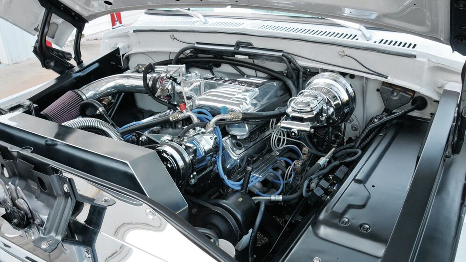 The first order of business was getting the new suspension system in there and lowering the ride height. An air ride system went, bringing the truck as low as it can go without any major modifications to the body and chassis. Next, the duo turned their attention to the cosmetic enhancements. Custom grille, replica Bullitt Mustang wheels, as well as custom paint, touches all around brought the truck to life.