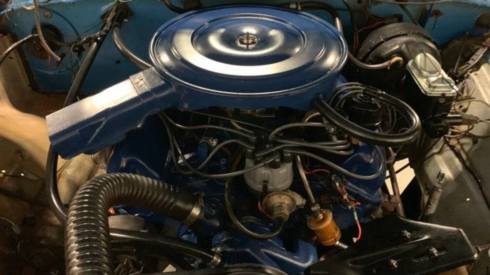 Pop the hood, and you'll find the original 360 V8 still in place. The engine bay looks very clean and the truck is said to run and drive very nicely with no smoke or other issues.