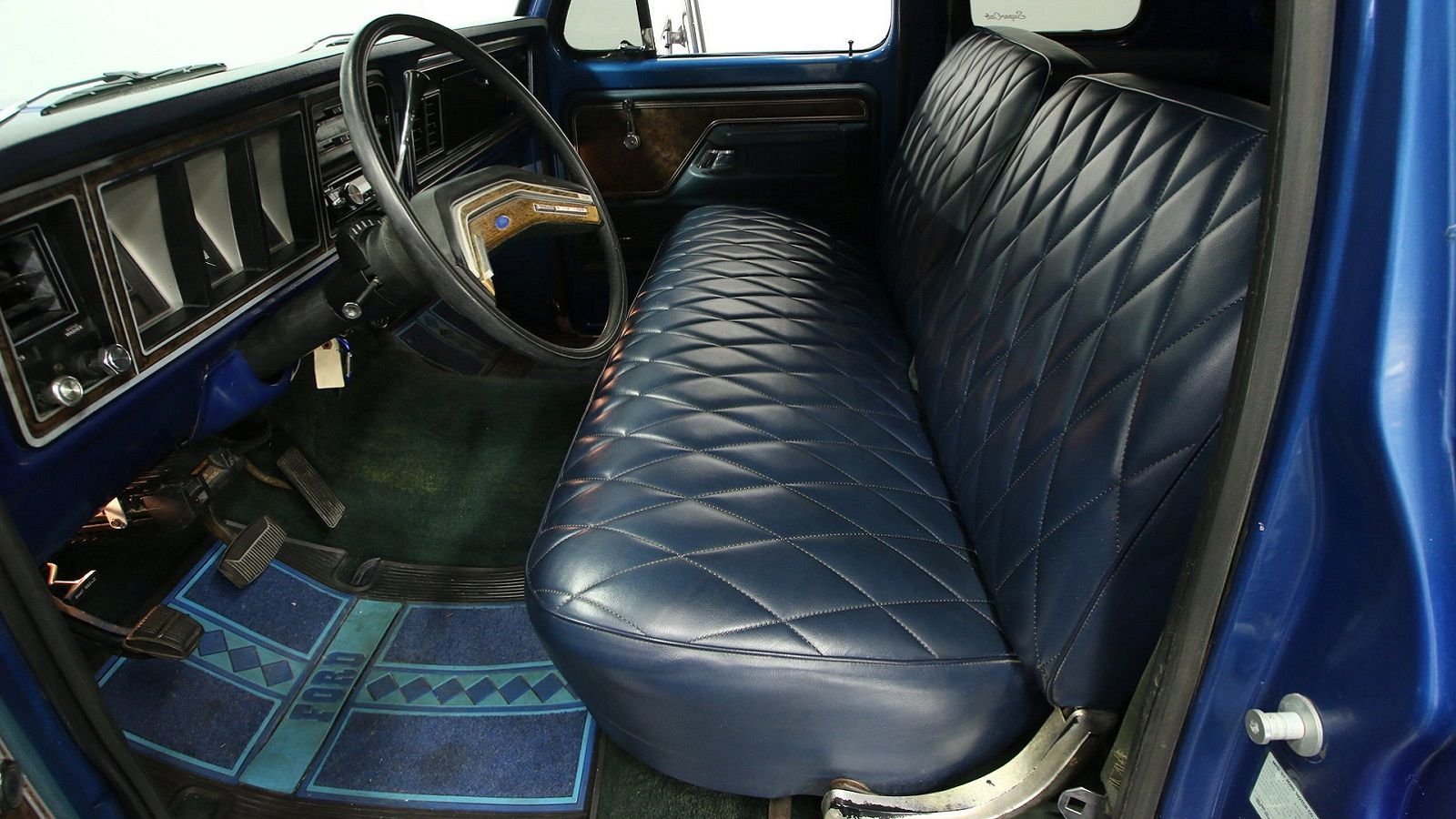 The inside of this Super Cab promises to provide you with the best comfort the '70s had to offer, too. Plant your rear on the diamond-pattern bench seat and grab the dual spoke wheel, and you'll instantly be transported back to an era where luxury pickups were just a tad different than they are now.