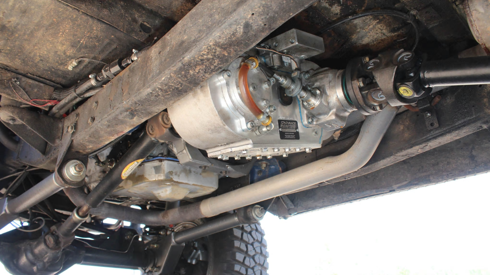 The healthy engine sends power back through a 4R70W overdrive transmission for easy cruising. Underneath, you'll also find Rancho RS9000XL adjustable shocks, an ARB Air Locker, coil-spring front suspension, James Duff radius arms, sway bars with disconnects, a drop pitman arm, Heim-jointed linkage, ram hydraulic assist, and a Rancho stabilizer.