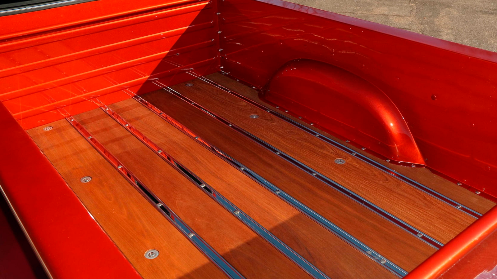 Not that we'd imagine anyone would use this gorgeous F-150 for hard work now, but it would be tough to throw any rocks in this stunning bed. With freshly stained wood and chrome strips, it simply looks too good to mess up.