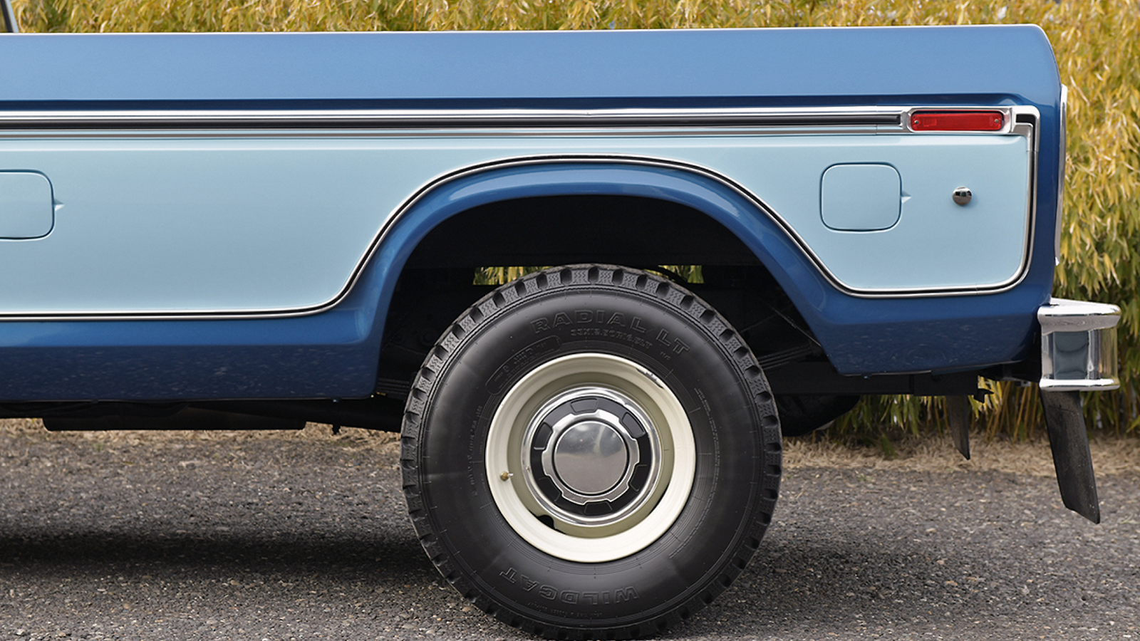 The classic dark blue/light blue two-tone paint certainly looks new, and this pickup is nearly original save for a couple of modifications including a Pioneer stereo, ancillary gauges, H4 headlights, and GE aircraft auxiliary lights.