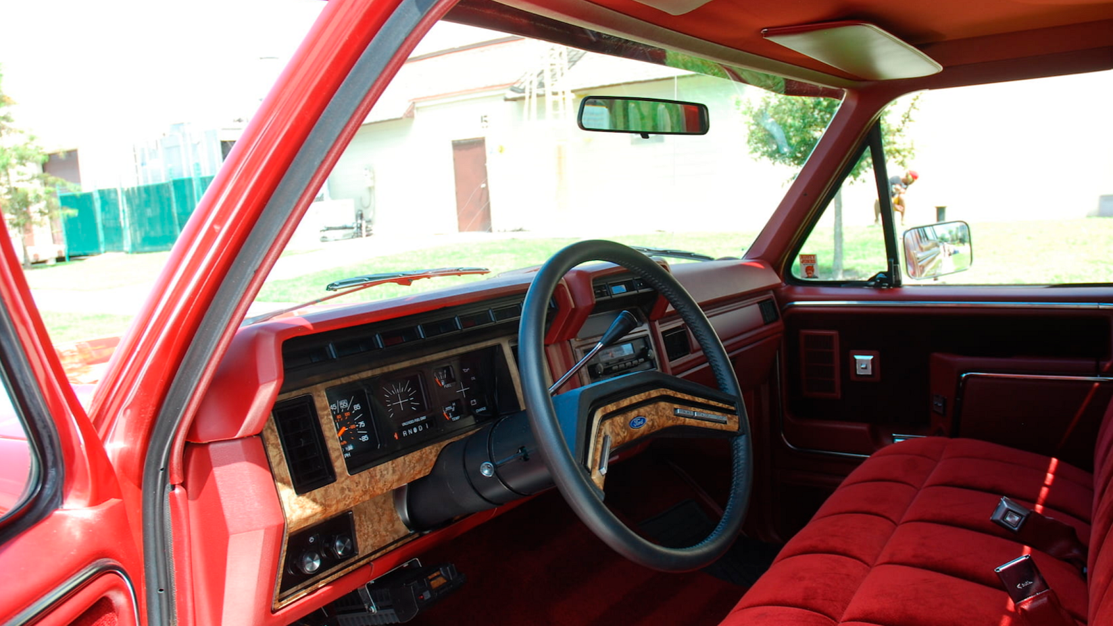 The fake wood applique is likewise in perfect condition, with zero fading or peeling. It's pretty clear from that and the unfaded seats that this F-150 has been stored away from the sun and the elements throughout the last several decades.