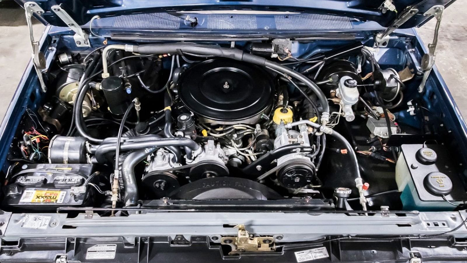 Inside, the Bigfoot F-250 oozes style. The gauge cluster is trimmed out in faux-wood paneling that makes the blue vinyl dashboard pop. The plush cloth bench seat is in like-new condition, as is the floor carpeting which is in impressively great shape. If you want to crank your favorite 80's tunes during the trip, fret not. The factory original AM/FM radio with cassette player is still on board, in addition to the original leather-wrapped steering wheel and floor mats.