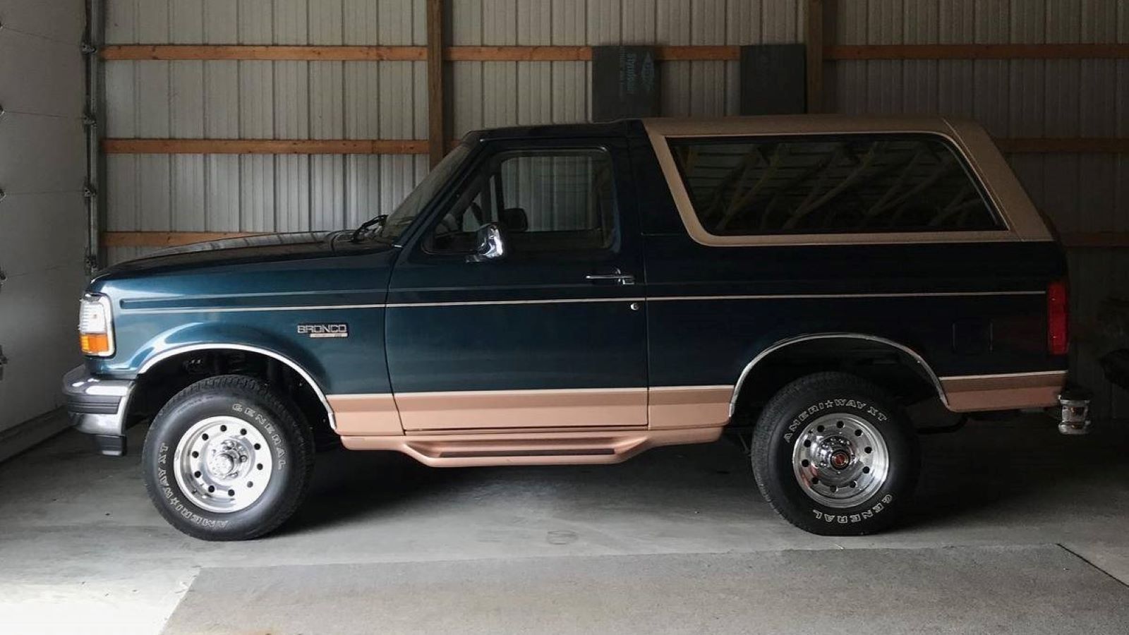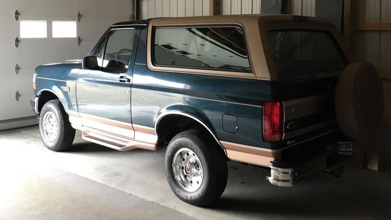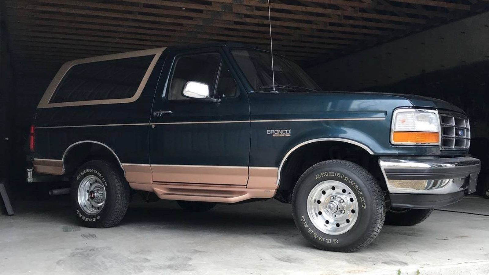 Inside and out, you can certainly see the potential this Bronco has. With a good clean, it should look showroom fresh. And in our humble opinion at least, no color combo looks better on these Eddie Bauer Broncos than this one's Deep Forest Green and Tuscon Bronze two-tone treatment.