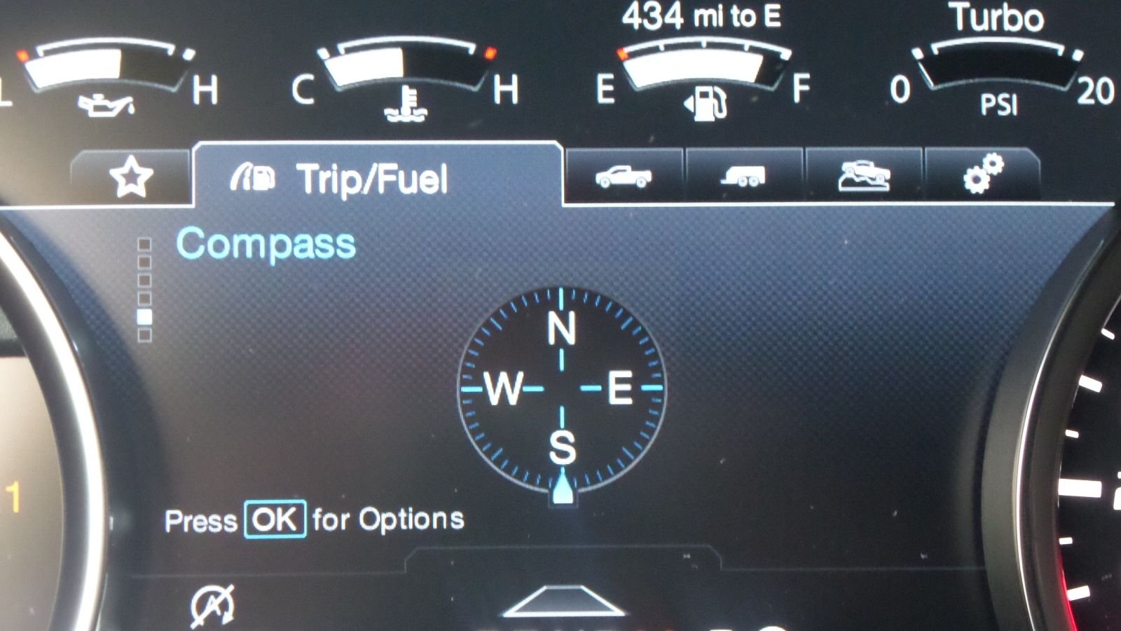 The gauge cluster has an electronic compass to keep you from getting lost in rough country.