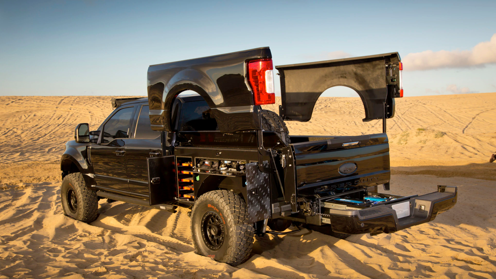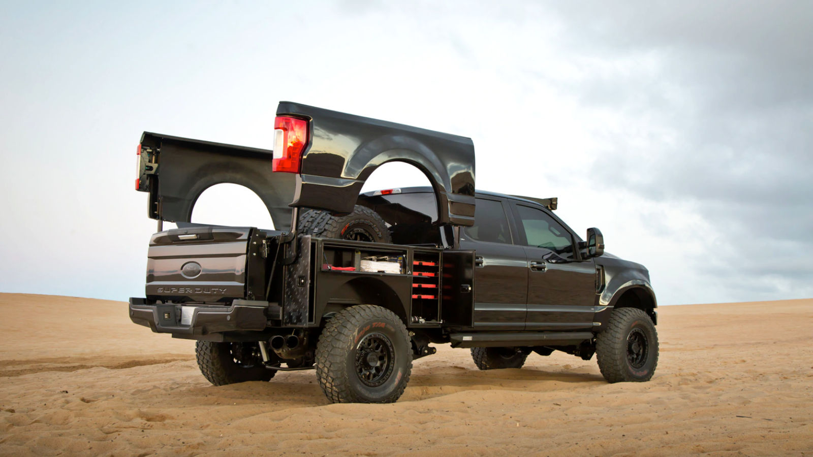 Truck magician Doug DeBerti and his son Brad have carved a particularly awesome niche in the truck restoration community with their dual-purpose rig, and the 2019 Ford F-250 they conjured for the 2018 SEMA Show was an ideal example. In fact, this suped-up F-250 had has many heads turning as it does customized compartments, illustrating what many had already assumed: there’s never been a truck like this.