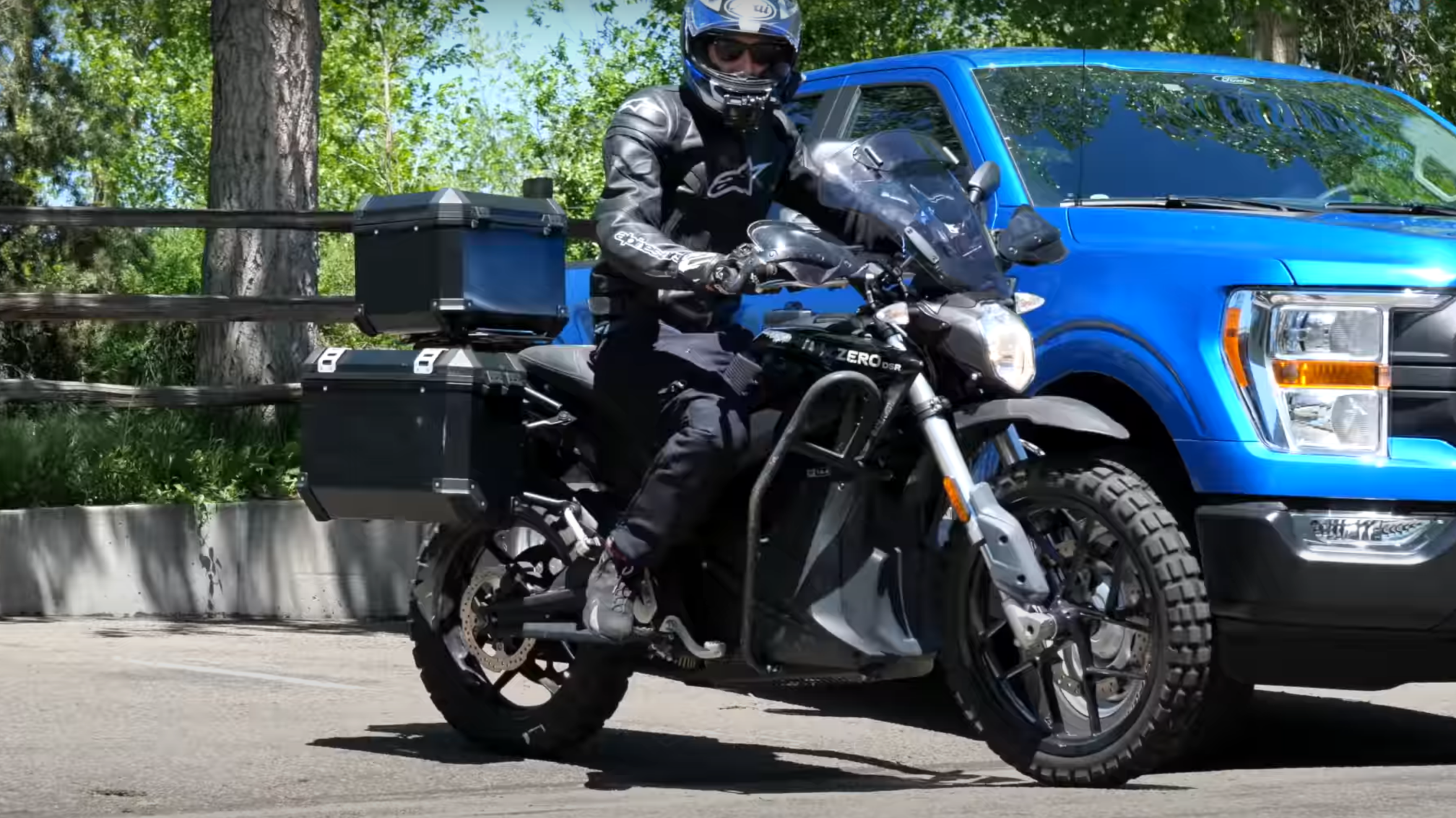 The folks at The Fast Lane Truck just so happen to own an F-150 PowerBoost and were recently testing out a Zero DSR Black Forest electric motorcycle. They wanted to see how far the bike would go on a full charge, so the pickup made for the perfect support vehicle. But this also had them wondering - could they use the PowerBoost to charge the two-wheeler once it died?