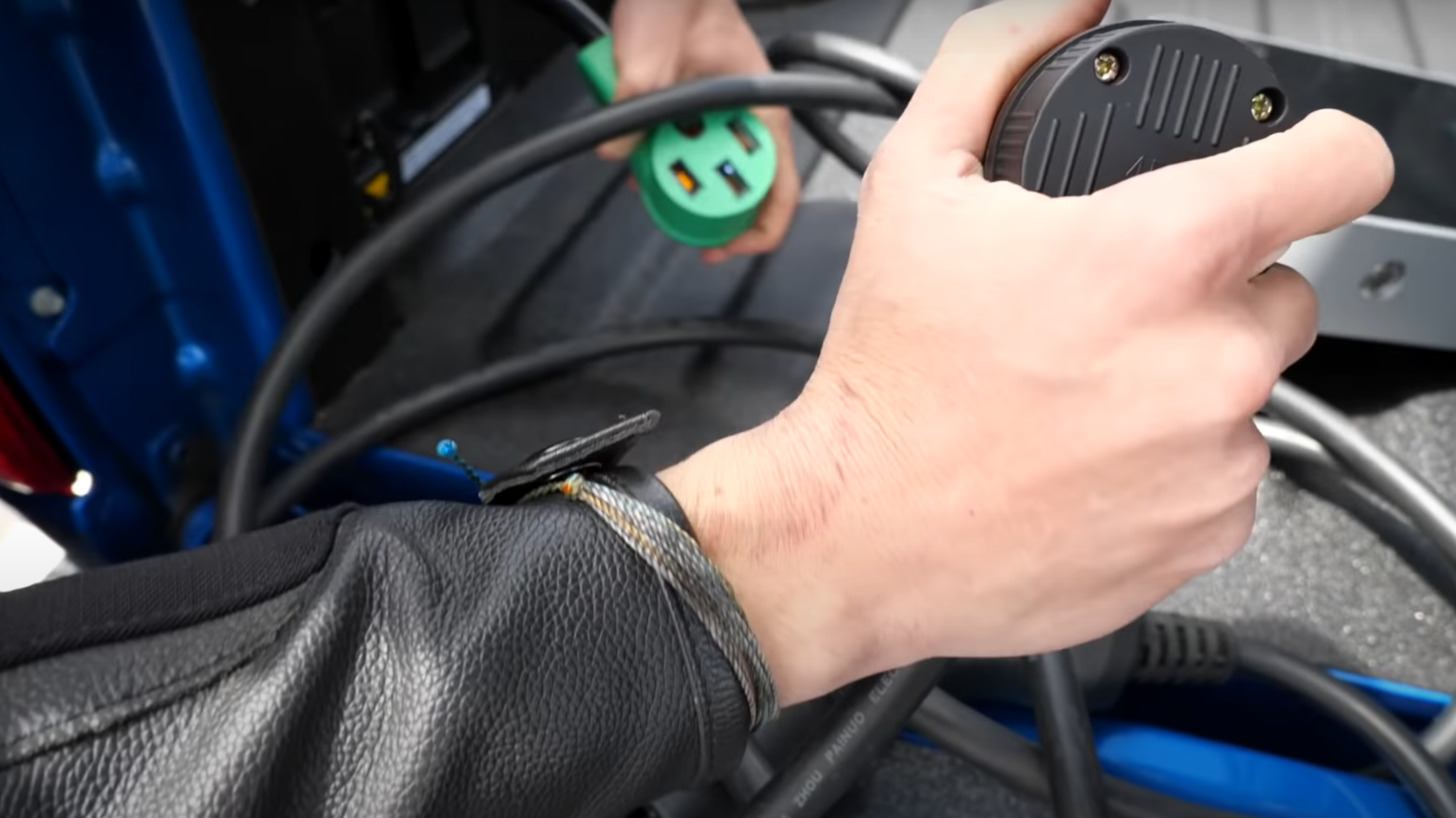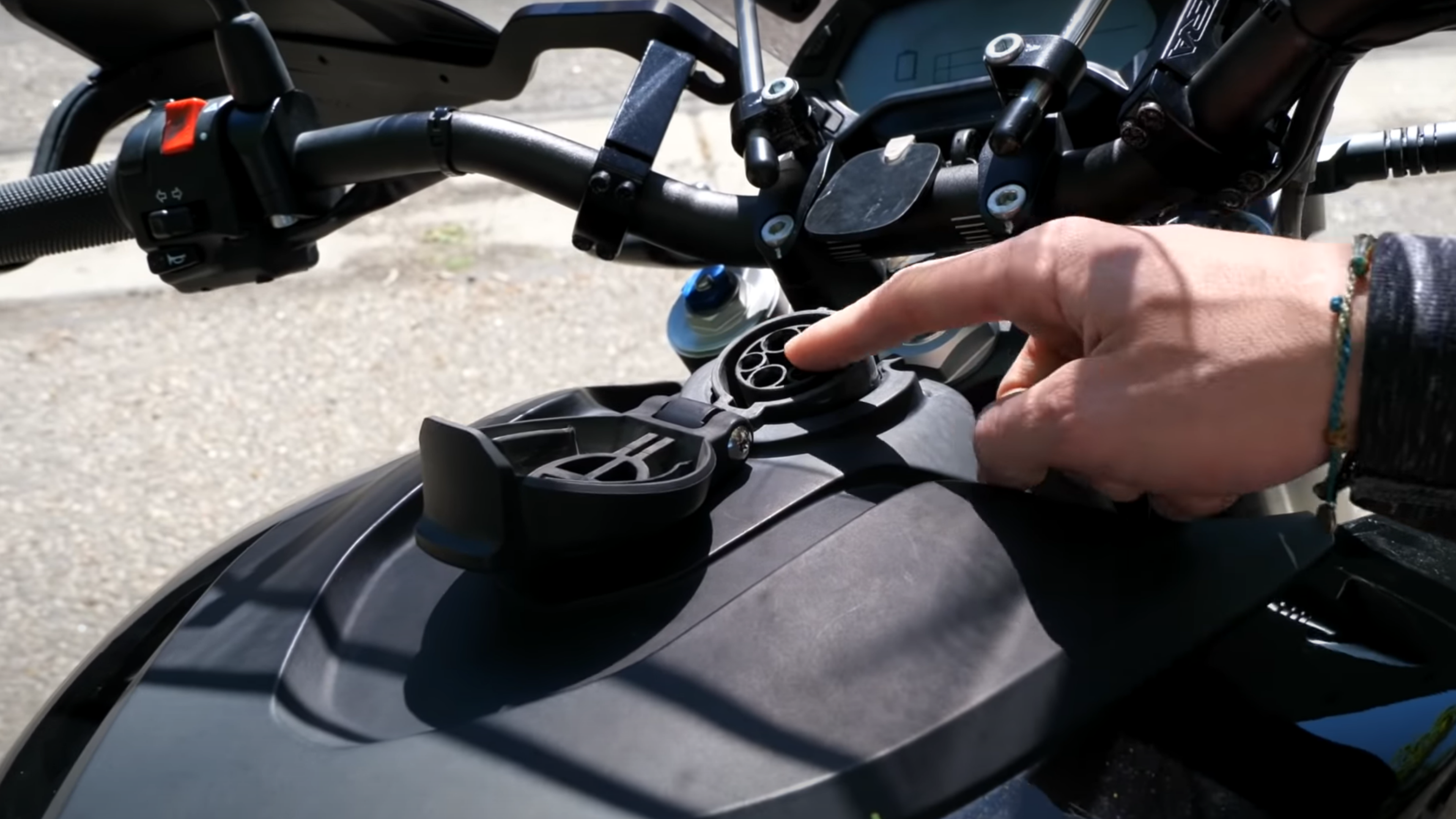 TFLT wound up getting 93 miles out of the two-wheeler before it hit 0 percent, at which point they loaded it up in the bed of the pickup and hooked it up to the F-150's 240v circuit. No one really knew if it would work, but the bike started pulling 6-6.2 kW of power from the pickup on the ride back to the office.