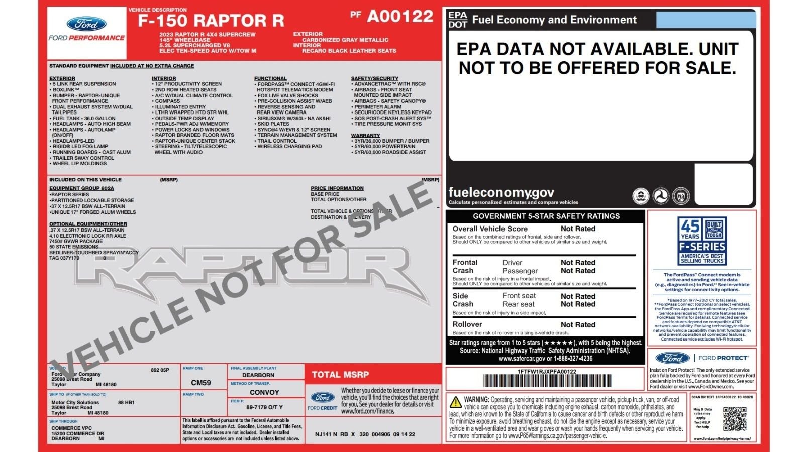 There are not supposed to be any options on the R Raptor, but somehow the stand-alone extra is this bed liner at $595 more. It is not very likely you will find this truck without it.