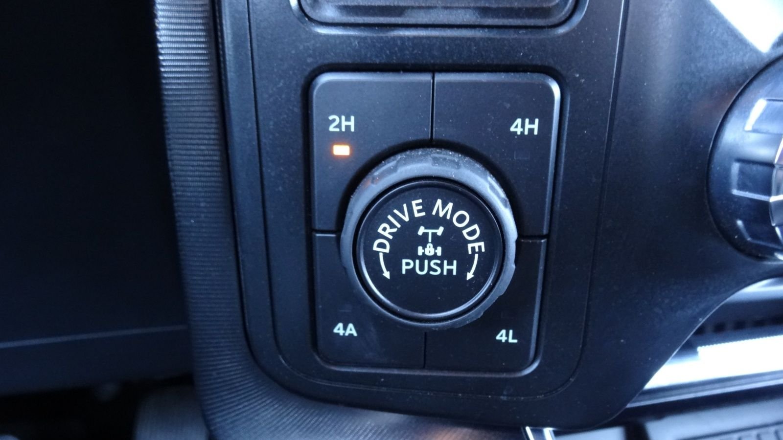 This large button selects the type of drive mode preferred. It can range from Normal, Sport, Tow, Baja, Off Road, and Slippery. The outer buttons are traditional 4X4 high, 4x4 low, 2-wheel drive, and all-wheel drive for the street. If you are racing this potent truck on pavement, ALWAYS have it in AWD. Failure to do so can result in excessive wheel spin from all that massive power, and loss of control. This is very true if the roads are slick!
