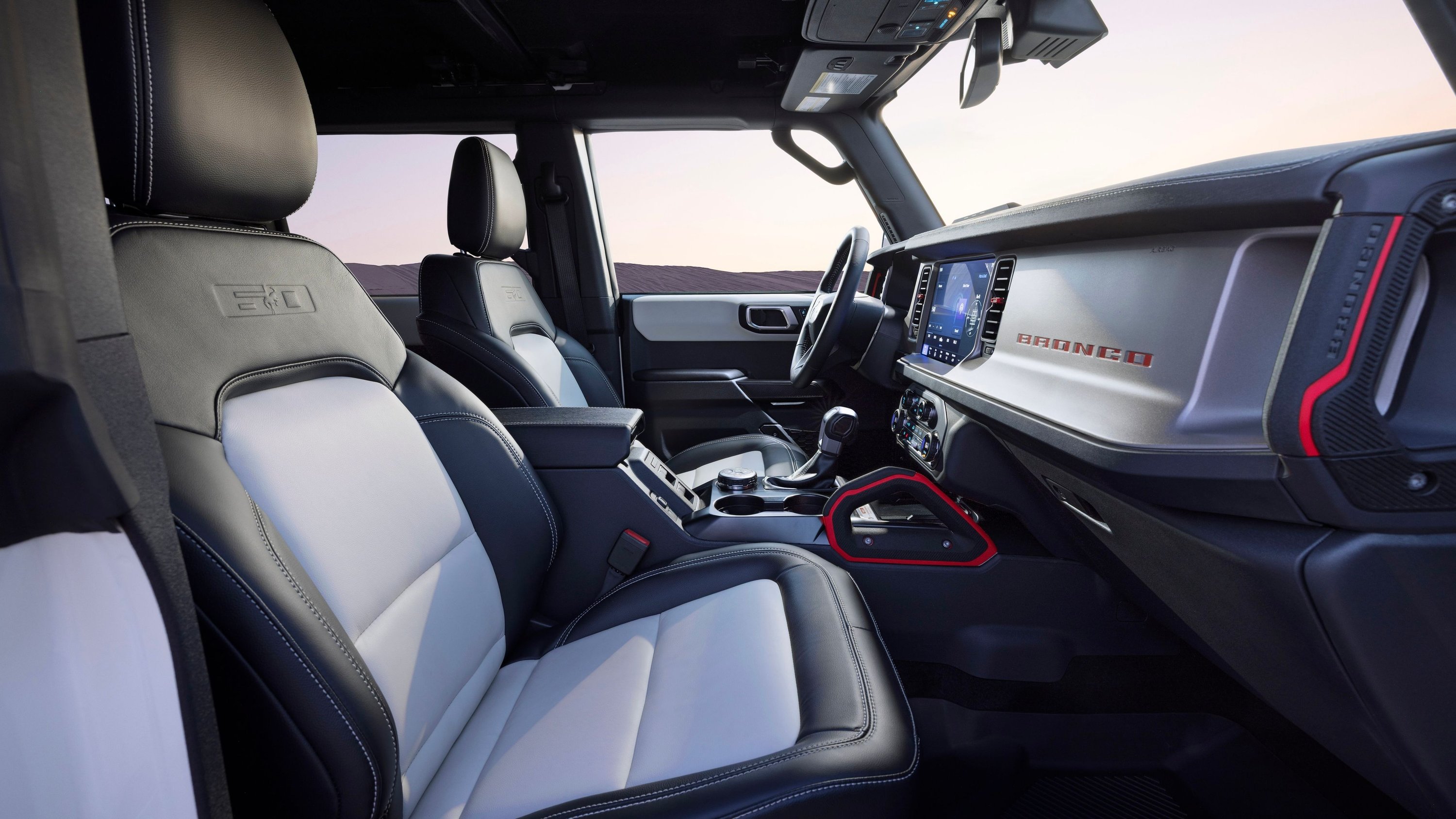 Finally, it's worth noting that the 2026 Ford Bronco 60th Anniversary Package gets a few new features as well. Those include standard wheelbase-length running boards, new A-pillar-mounted grab handles (which will be available across the entire 2026 Bronco lineup), a matte black Ford badge on the tailgate, and a hard-center rear tire cover that's finished in Wimbledon White with a Vermilion Red "BRONCO" script.