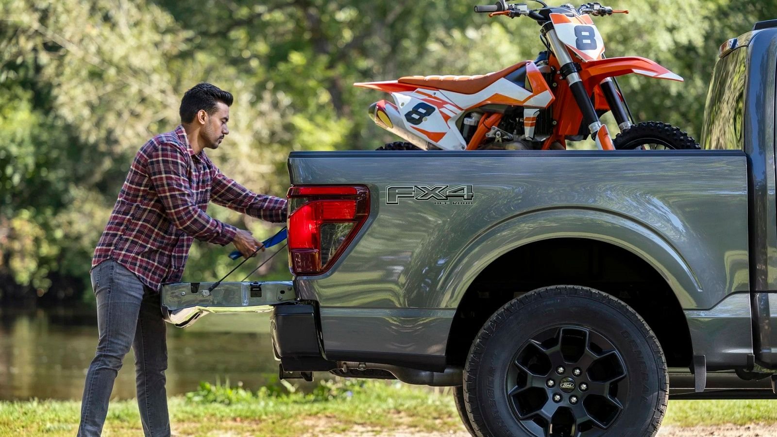 Ford is proud of the tailgate innovations they have introduced over the years. From a fold-down tailgate step to a power up/down tailgate Ford has spent a lot of time, effort, and money developing the F-150 tailgate. That continues in 2024 with the available Pro Access Tailgate. With this option, you can open the center section of the tailgate to access contents in the bed without having to open the full tailgate. This swingout portion can open in three different positions, 37 degrees, 70 degrees, and 100 degrees. The smallest angle allows you to open the tailgate even when you have a trailer hooked up.