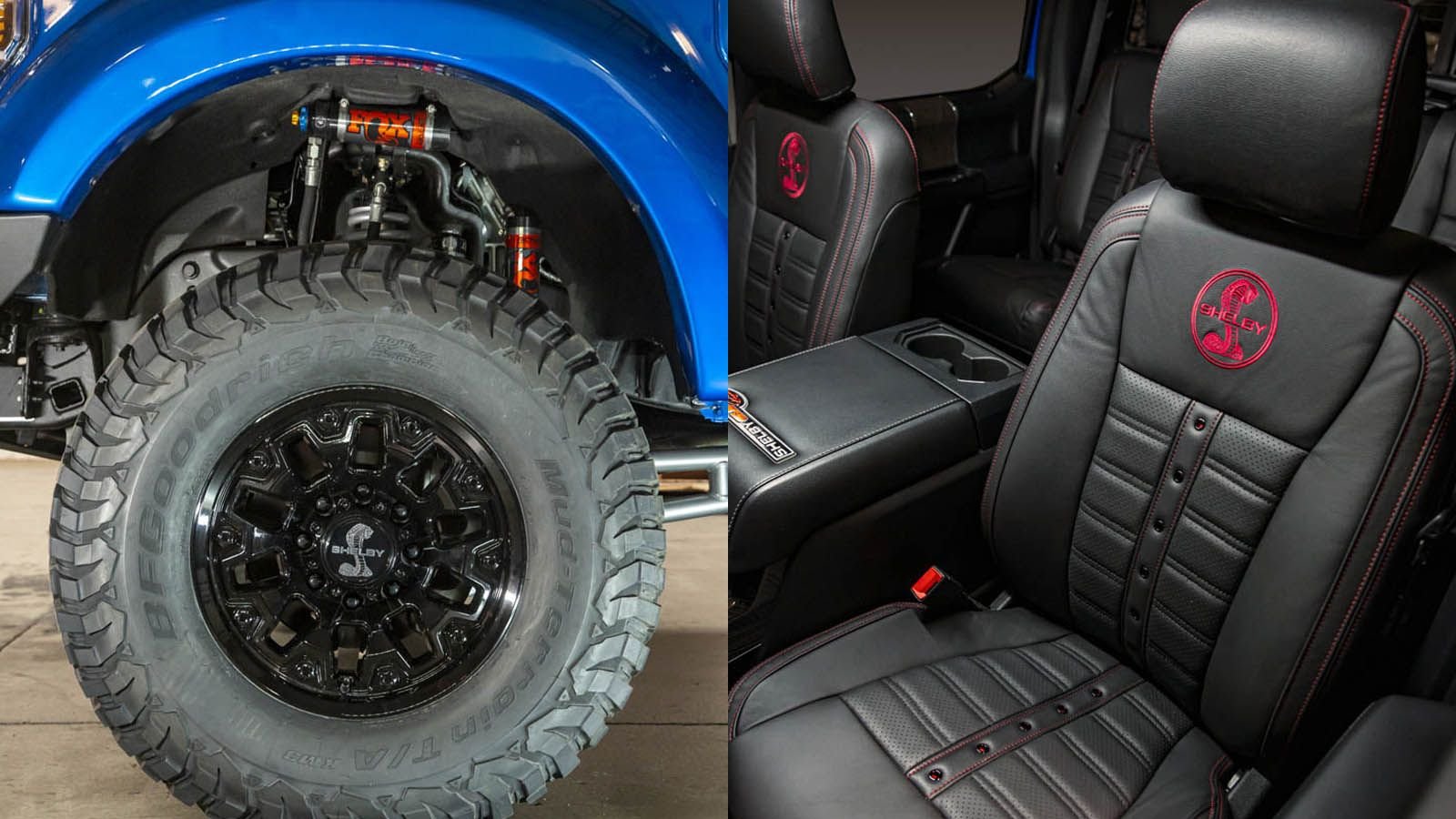 The Shelby truck also comes with 11.8-inch LED fog lights a curved 40-inch front light bar, and a 50-inch light bar at the top. On the inside, the F-250 Super Baja receives leather floor mats, carbon fiber trim, billet racing pedals, and leather seats with Shelby logos embroidered in them.