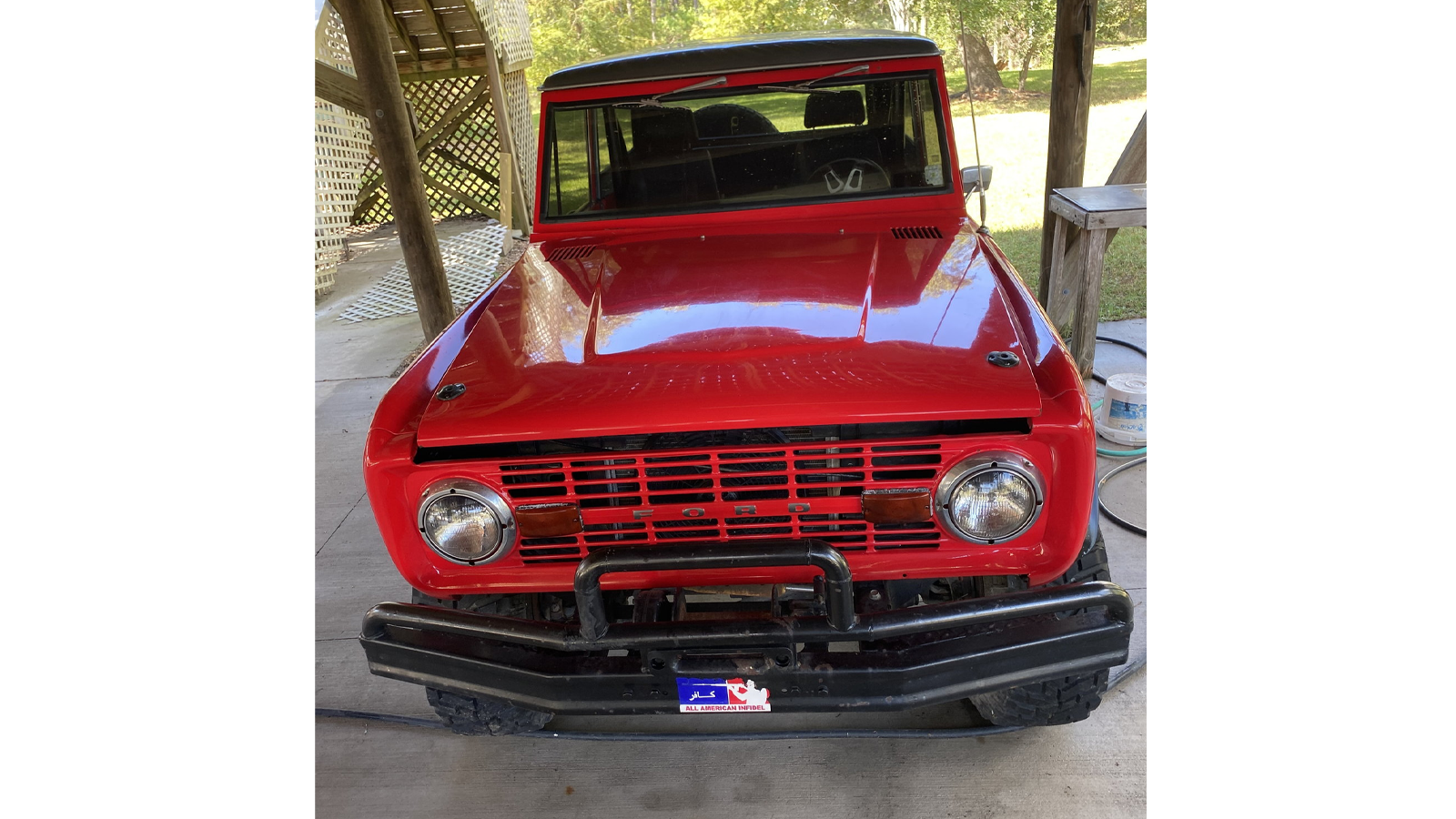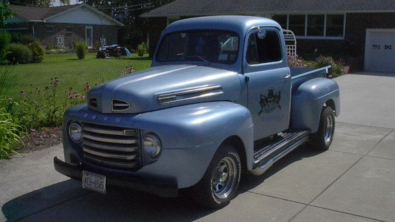 And lastly, we had to give this 1949 Ford pickup some love. Per the ad, the truck is not exactly a trailer queen. It has its fair share of upgrades that make it run nicely despite its age. And it's quite easy on the eyes, as well. Click over to the listing to read the full list of updates. You'll notice some vinyl art on the side doors, which are reportedly removable, but according to the seller, they get a decent amount of attention.