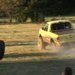 This driver is definitely winning the race with this object. Wait, this object doesn't have a driver, it's a... it's the tire, and now he's screwed. Next time you decide to go extremely fast off the road, be sure to tighten all of your lug nuts, not just a couple of them.