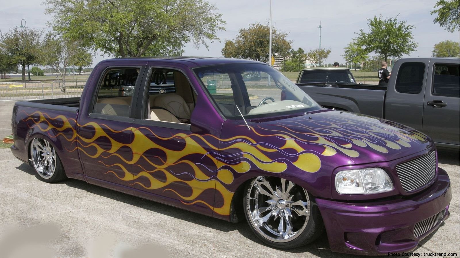 Must we explain why you should never do this to your Ford truck? If you must know, flames don't look great on a Ford truck, and if you can make flames look good, then you are a unique individual. Nothing can cheapen the Ford truck quicker than some flames from Walmart, so leave it the way Henry Ford would've wanted you to leave it at, without flames.