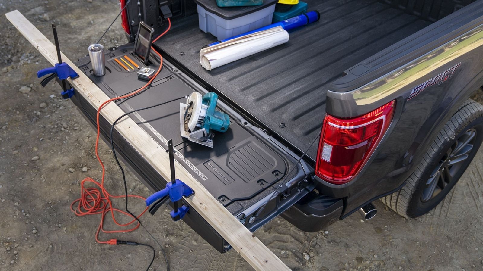 The 2021 Ford F-150 introduced several new tailgate functions to make it more jobsite-friendly than ever. Do you need to cut a 2x4 in the back of your truck? No problem. The new tailgate comes standard with c-clamp pockets so you can easily secure the piece of wood for perfect cuts every time.