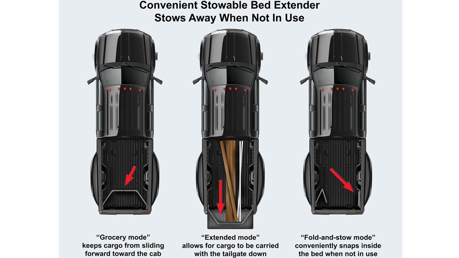 Bed extenders have been around for a long time, but the Ford stowable bed extender, first seen on the 2008 Super Duty, is the best version yet. It can be used in three distinct modes. There is “Grocery Mode,” which creates a small cargo area within the truck bed to keep a handful of grocery bags from sliding all over the bed. “Extended Mode” allows for longer cargo to be transported with the tailgate down. “Fold-and-stow Mode” allows you to secure the unit to the side of the track bed when it is not in use.
