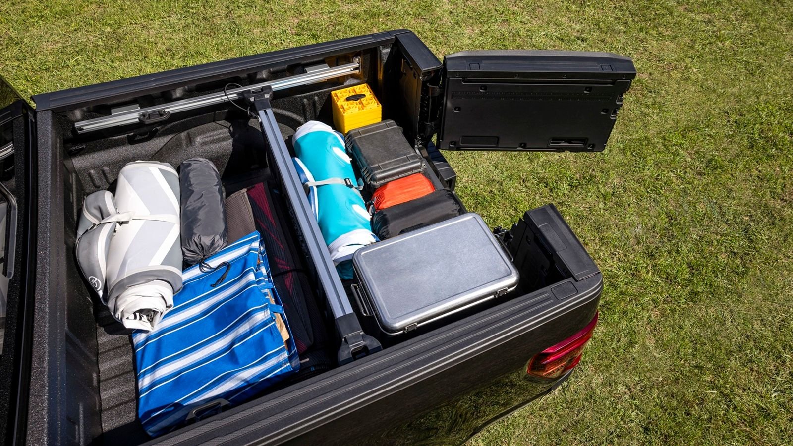 In 2024, Ford gave us another tailgate innovation, the Pro Access Tailgate. On this tailgate, the middle section swings out like a barn door. It can be stopped at an opening angle of 37, 70, or 100 degrees. So, if you just need to grab something at the back of the truck, you don’t need to drop the whole tailgate or try to reach over it. You can also easily climb into the back of the truck thanks to a footstep that stows under the bumper. Step on that, then step on the bumper, and then step into the bed. The Pro Access Tailgate makes the truck bed more accessible than ever.