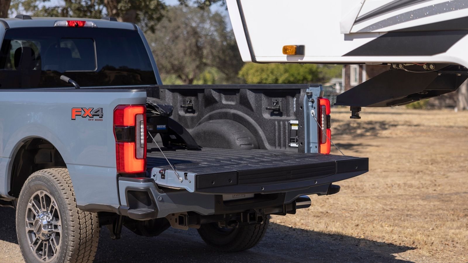 This nifty feature became available on the Ford Super Duty models starting in 2023. The camera is mounted in a way that it works when the tailgate is down. This can help you navigate your truck with the tailgate down without fear of bumping into something. It also makes it easier for you to hitch a trailer.