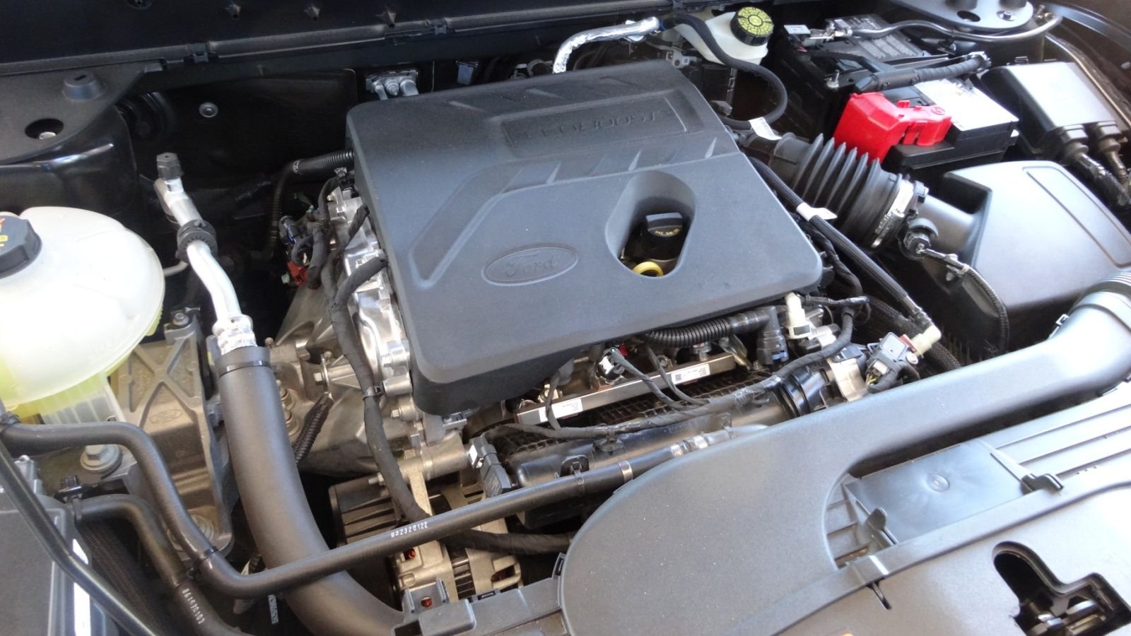 The largest engine is a 2.0 liter cranking 245 horsepower, and rated at 21/26 mpg. The base that most customers will get is a tiny 1.5-liter three-cylinder seen here. While small, its turbo boosts horsepower to a healthy 181. Fuel economy is claimed to be 25/28 mpg. All Bronco sports come with an 8-speed automatic tranny, and AWD. This small motor doesn't sound like much on paper, but it actually provides very good acceleration. It is also smooth and quiet. We put 600 miles on it to get the real-world fuel economy, which we will present in the other slides.