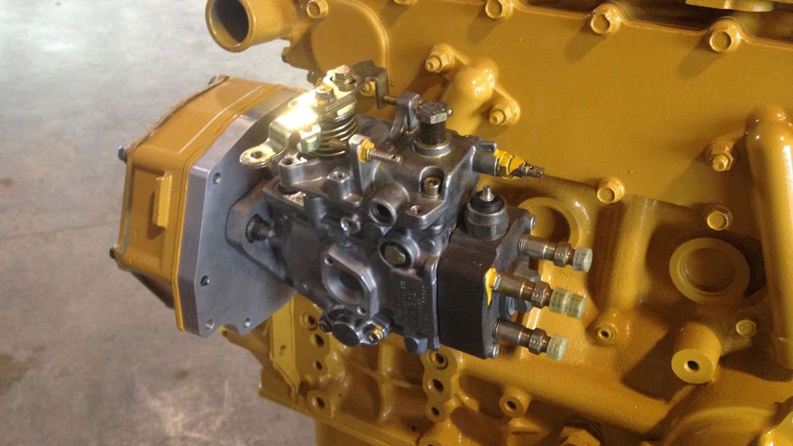 A stock 3044CT is rated for just 80 horsepower and 250lb-ft of torque. Tucker managed to squeeze out an estimated 250 horsepower and 500lb-ft with his trick setup. First, he fabricated a custom adapter plate to upgrade the injection pump to a Bosch VE/Zexel hybrid unit capable of pushing much more fuel to the reconditioned and overflowed injectors.