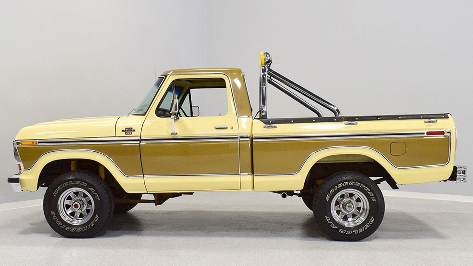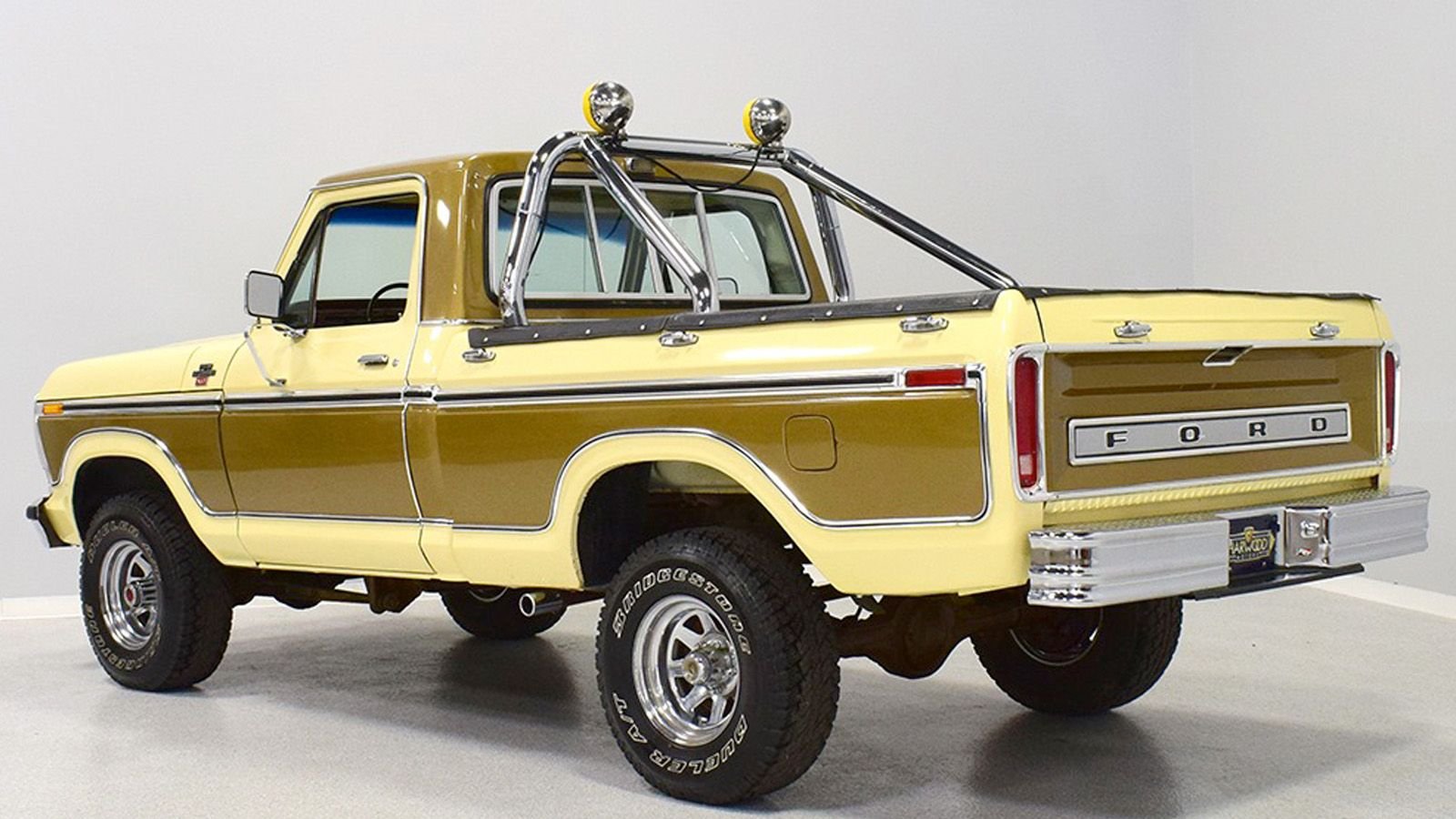 Listed with Harwood Motors in Macedonia, Ohio, the Light Sand over Gold Metallic F-150 has an asking price of $54,900. They state that mileage is not a misprint and the ad reads as follows, “One owner western truck. Original paint, interior, and 400 cubic-inch V8. Automatic, cruise control, 4-wheel drive. Aftermarket wheels, roll bar, and exhaust—otherwise stock. Fantastic survivor!”