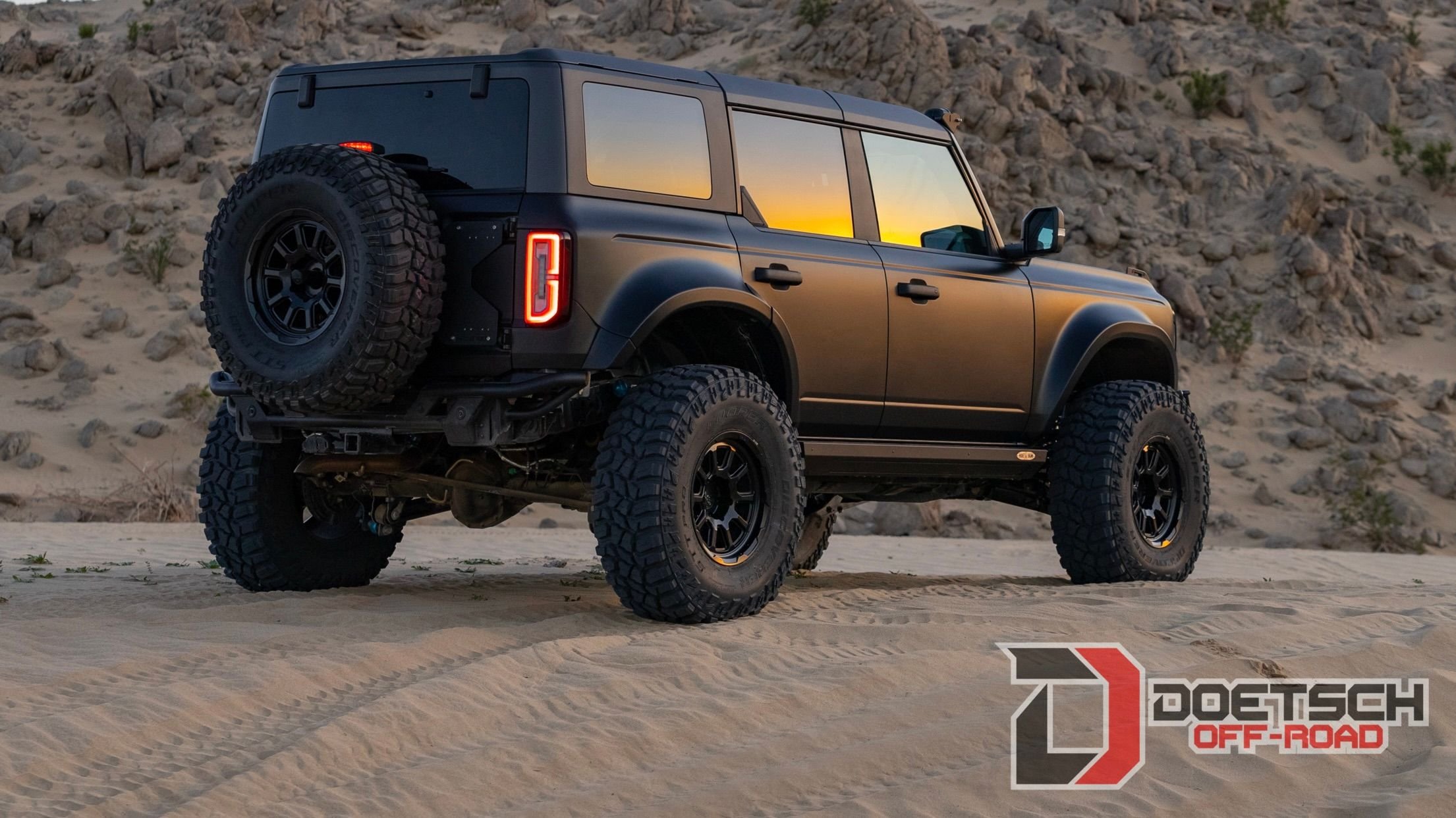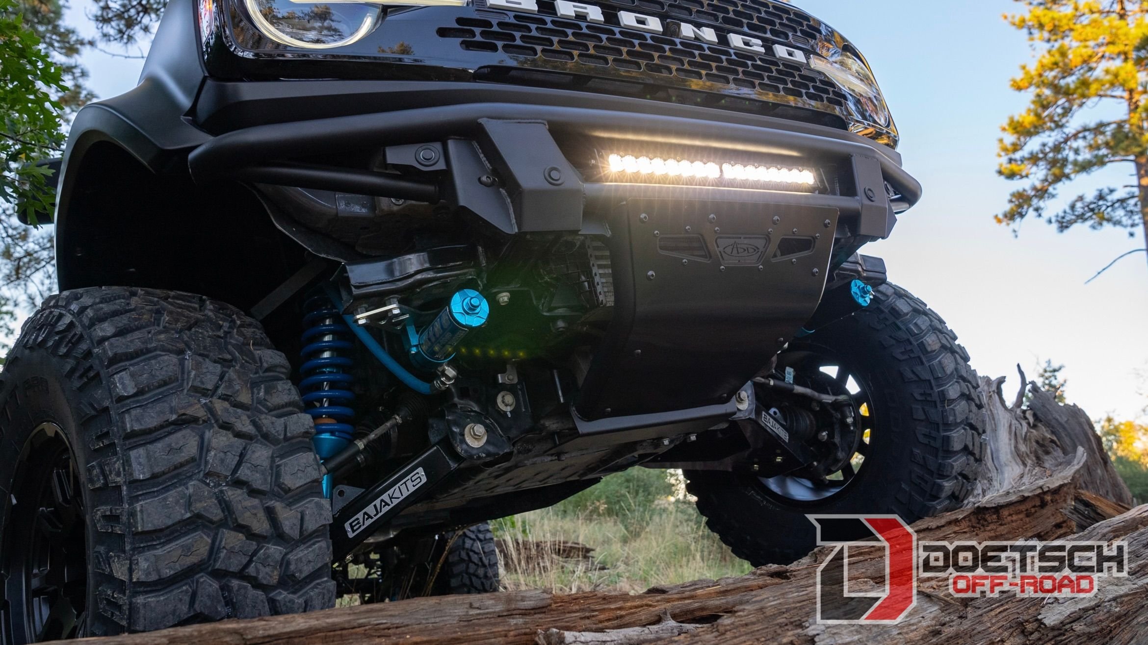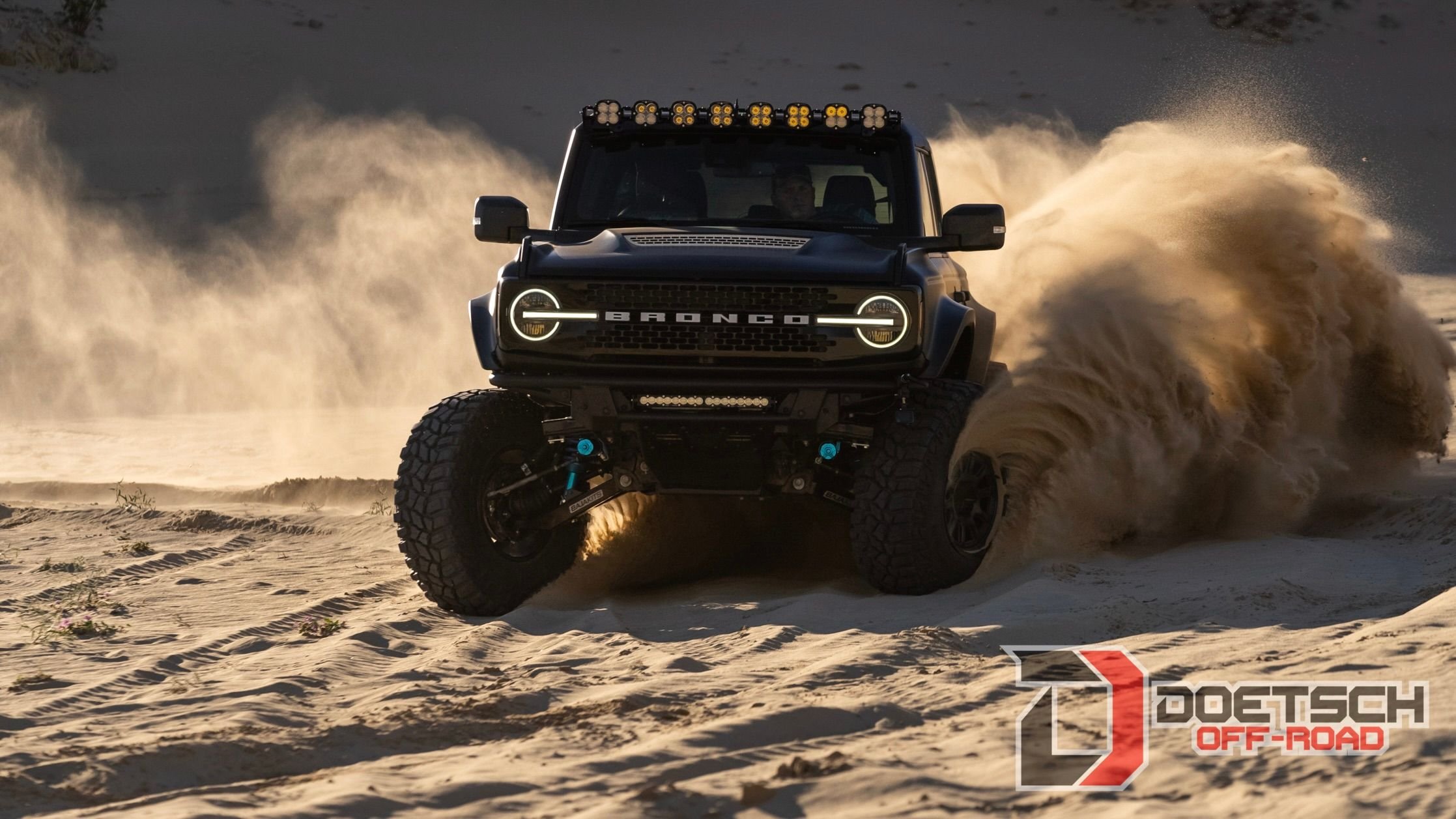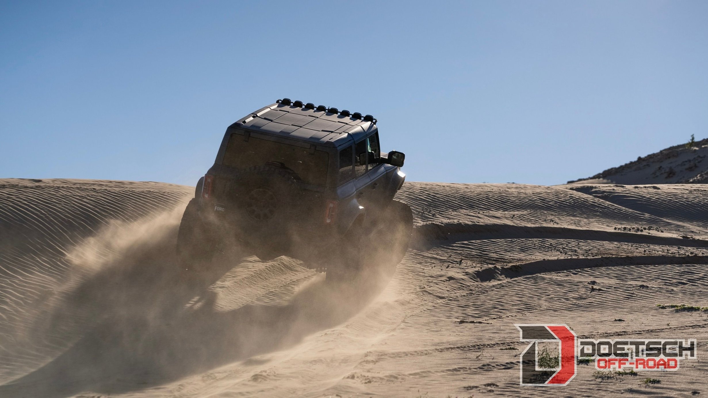As a showcase for what Doetsch is capable of doing with a stock Bronco, this build features a true laundry list of upgrades, all of which came about with the intention of creating a high-speed Baja-style desert blaster. And that's precisely what we're looking at here, as this particular Bronco was built around its highly capable suspension setup.