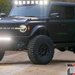 On the outside, this Baja Bronco looks the part thanks to Rock Slide Engineering steps, Advanced Fiberglass Concepts 5" fender flares and a ram air hood, Addicted Desert Designs Pro Series bumpers, Baja Designs lighting, a Hammerbilt reinforced spare tire bracket, AlphaRex AlphaBlack LED headlights, a backlit Bronco logo from Oracle Lighting, and a satin black vinyl wrap.