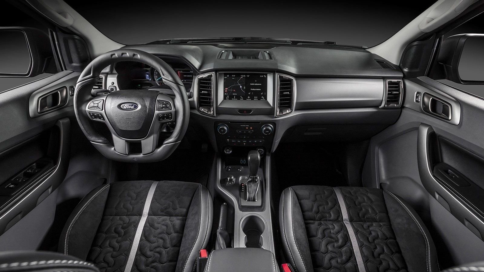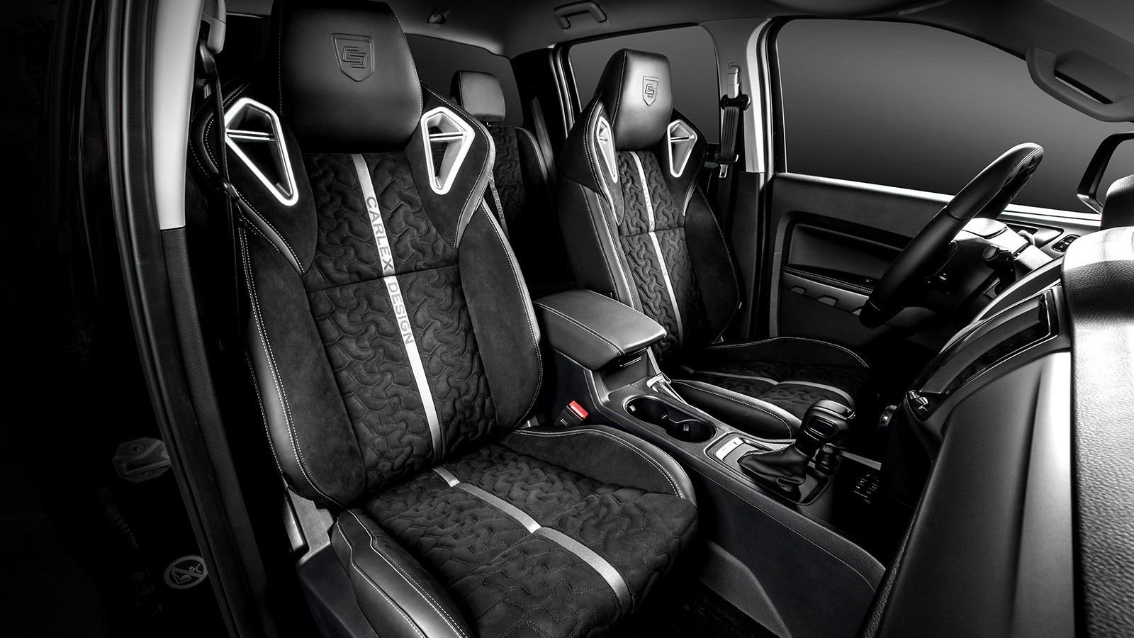 Carlex worked a ton of magic on the inside of the Ranger as well, and the result is a seriously attractive interior that looks quite premium, too. The new seats sport a unique pattern with what Carlex calls "off-road seams," along with some silver stripes and stitching. A little bit of embroidery work shows off who designed and built all this cool kit.
