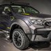 The murdered out 3.2-liter Ranger has new Pedders off-road 1.75-inch lift kits comprising new springs and shock absorbers, which are custom colored of course. The vehicle also gets a full exterior roll cage and roof-mounted lightbar to boot. The satin-black wheels are wrapped in BF Goodrich all-terrain rubber, a stainless steel dual-exit sports exhaust system.