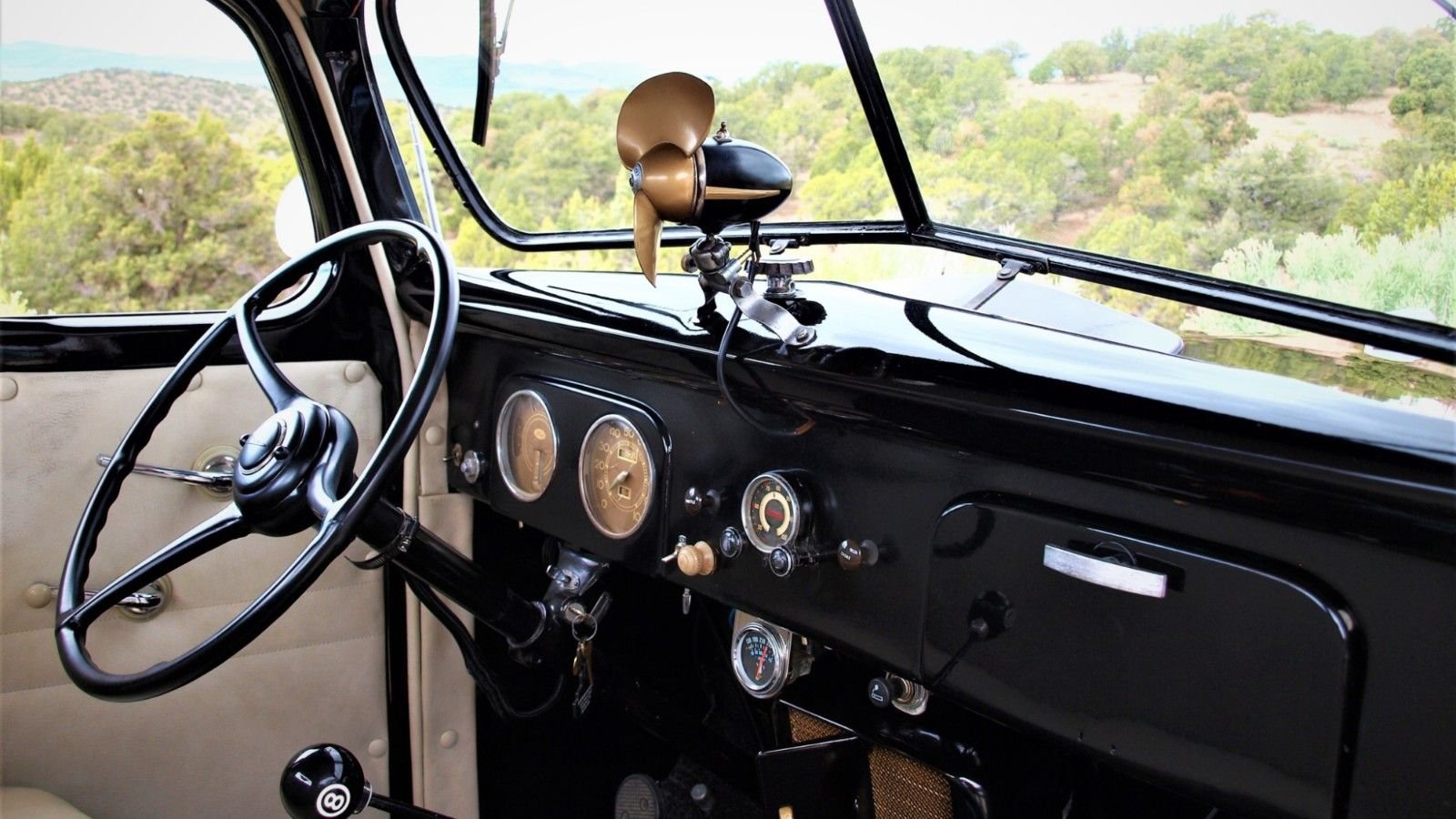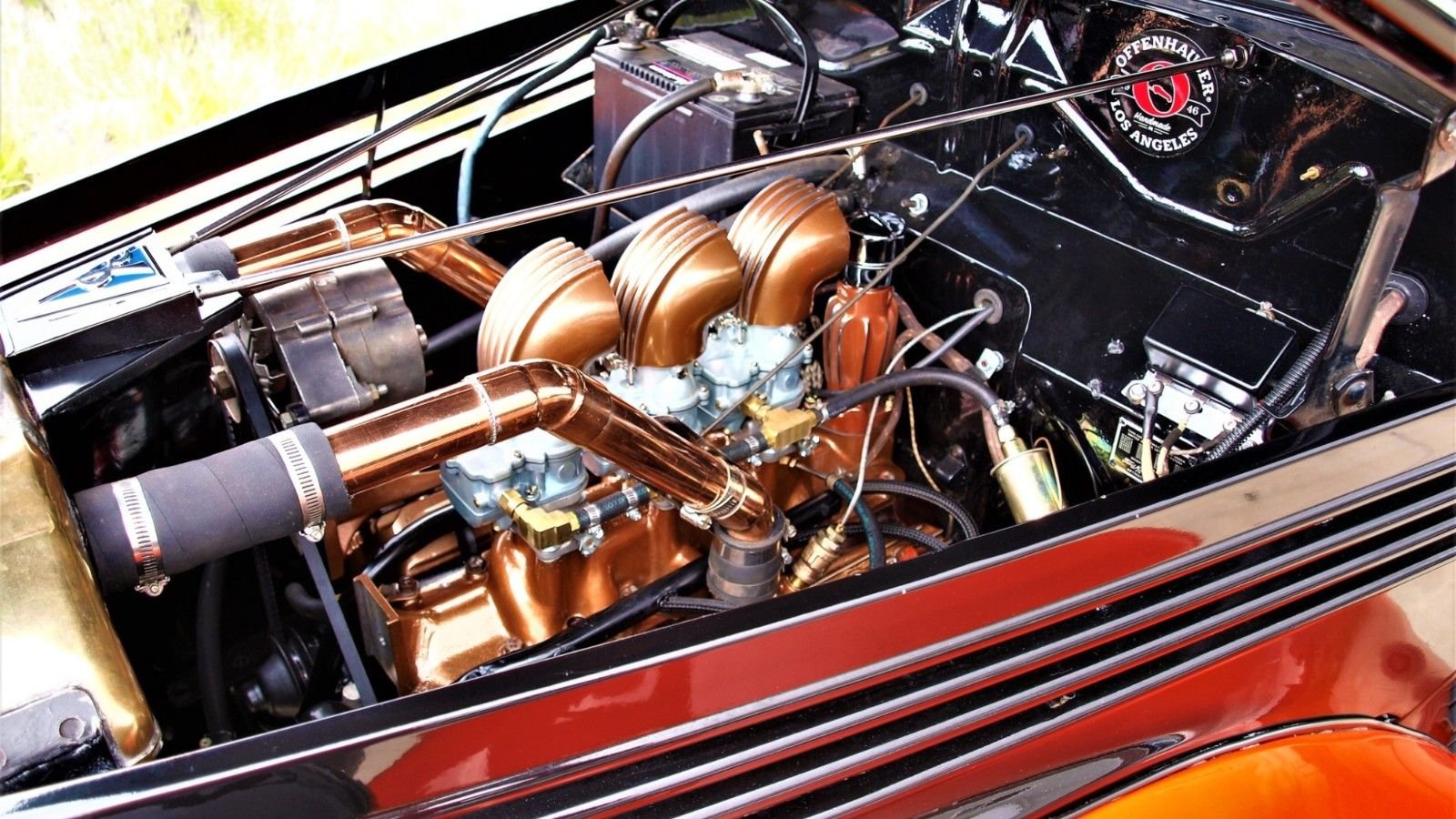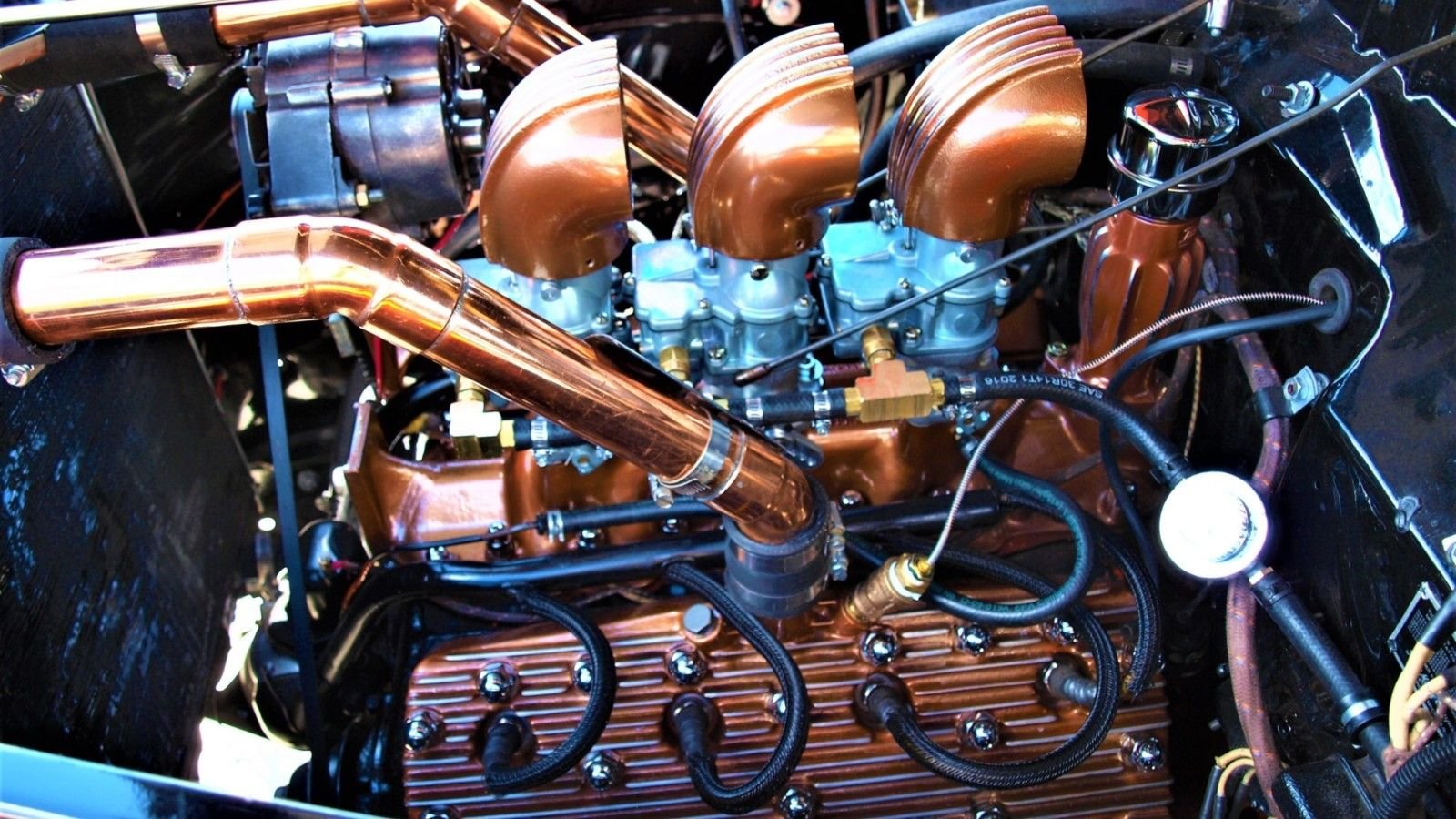Under the hood, you'll find a 221 cubic-inch Flathead V8 dressed up with various copper plated parts. The beautiful mill is backed up by a three-speed manual transmission and features a host of performance upgrades.