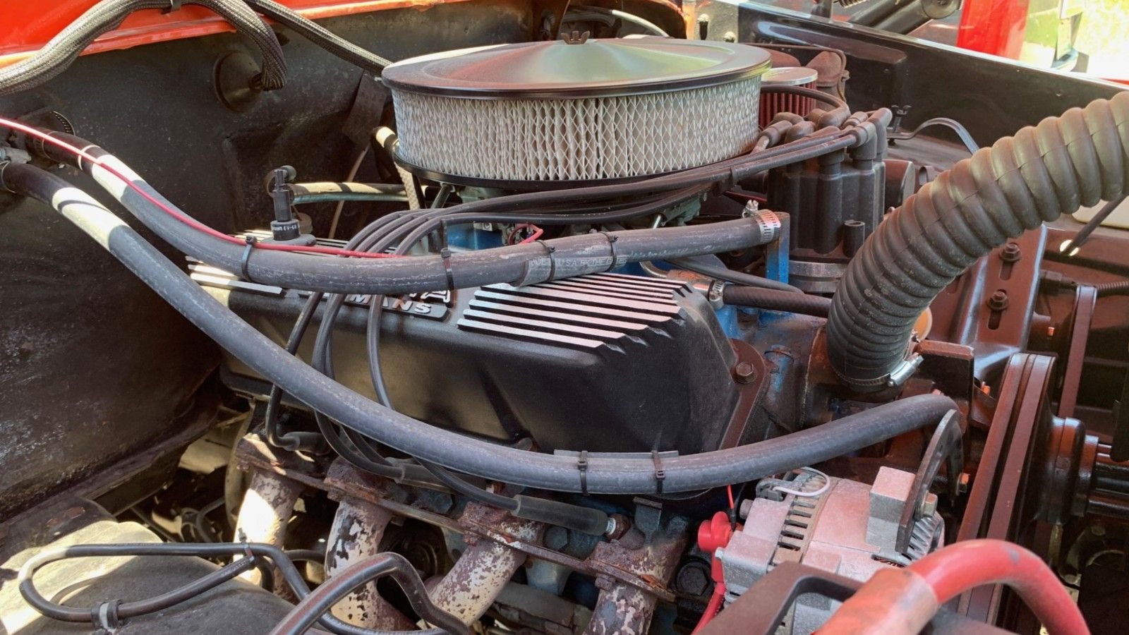 Pop the hood, and you'll find a few upgrades to jazz up the original 360 a little. They include Cobra valve covers, an upgraded fuel system, Griffin aluminum radiator, and a new alternator, water pump, distributor, and carburetor.