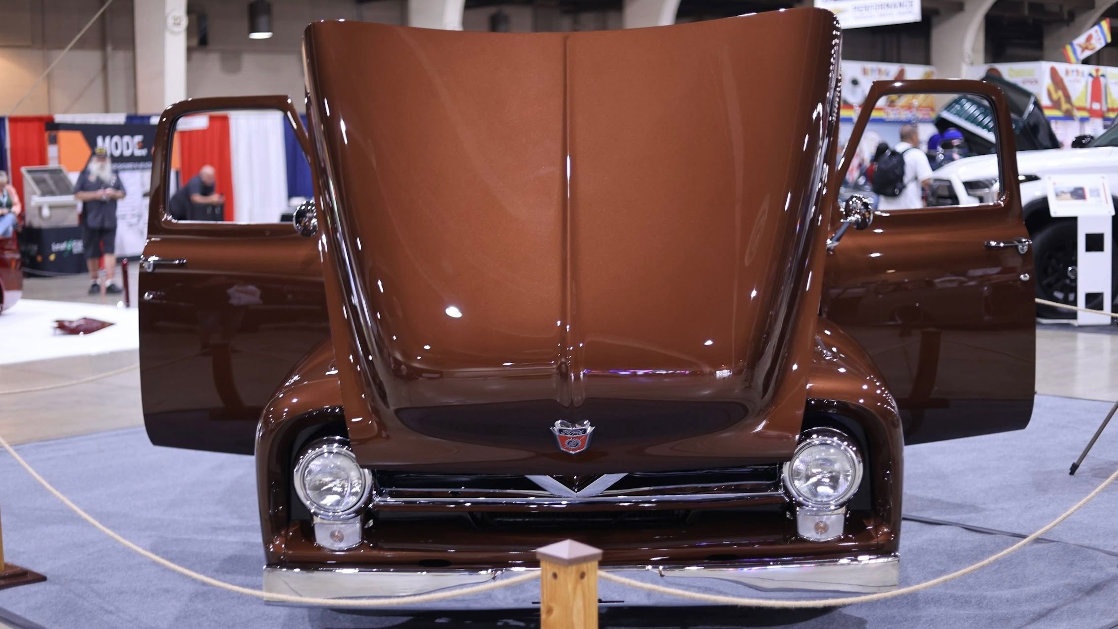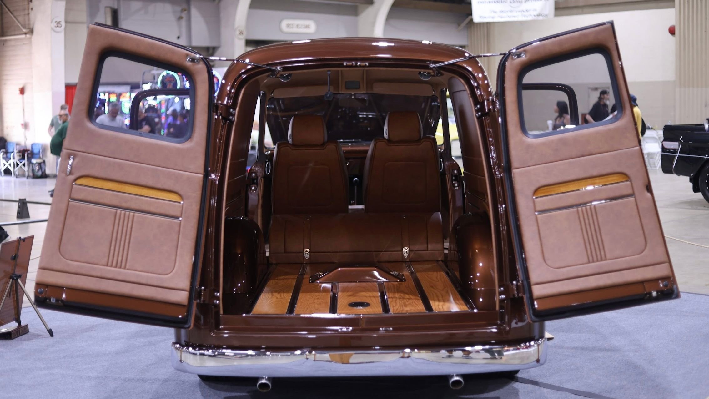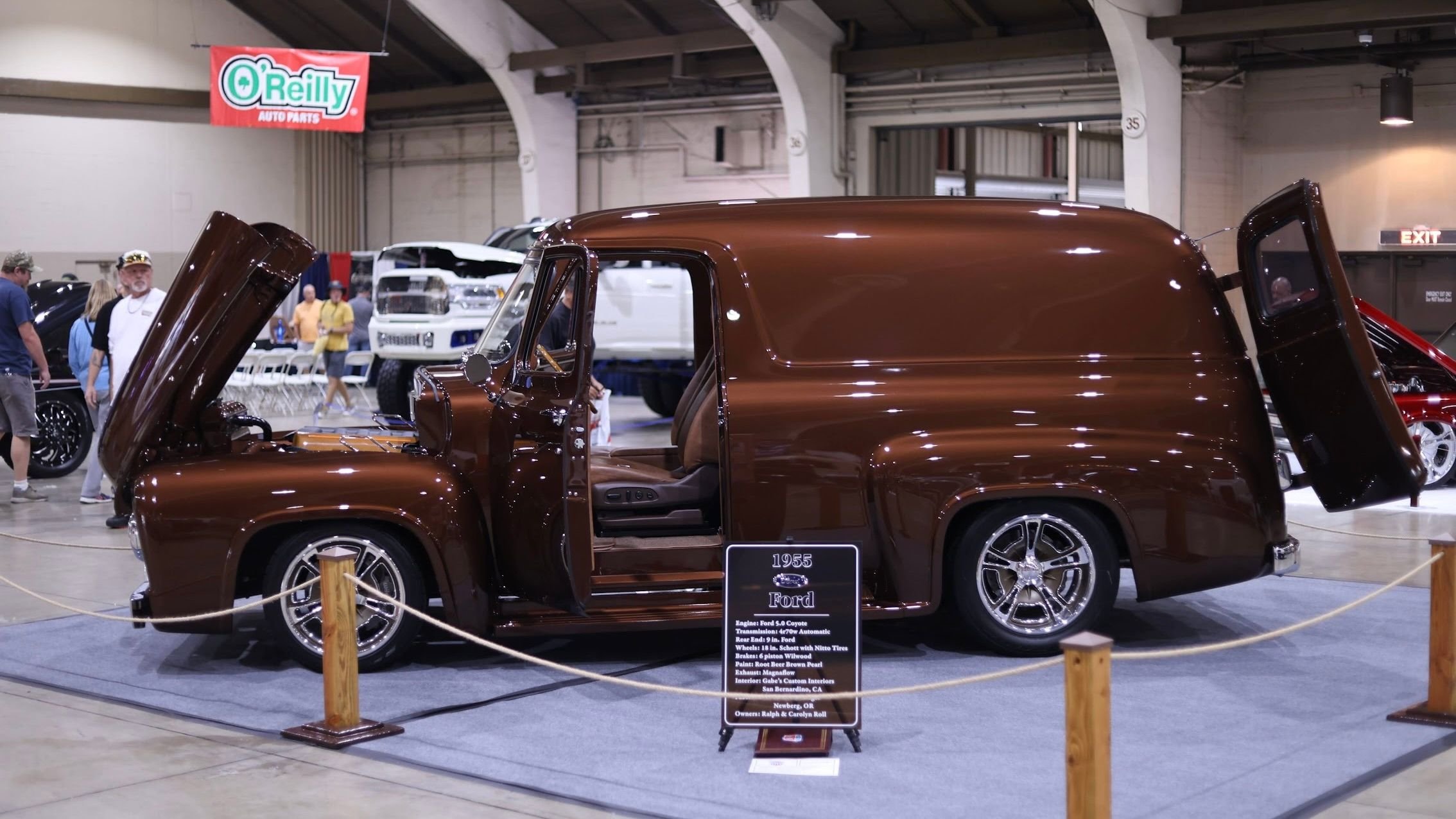 This wicked 1955 Ford panel van was built by the folks at Kreative Images out of Newberg, Oregon, and is owned by Ralph and Carolyn Roll. It features a truly unique exterior, for starters, one that's been completely smoothed out in every way, and covered in Root Beer Brown paint to help it stand out.