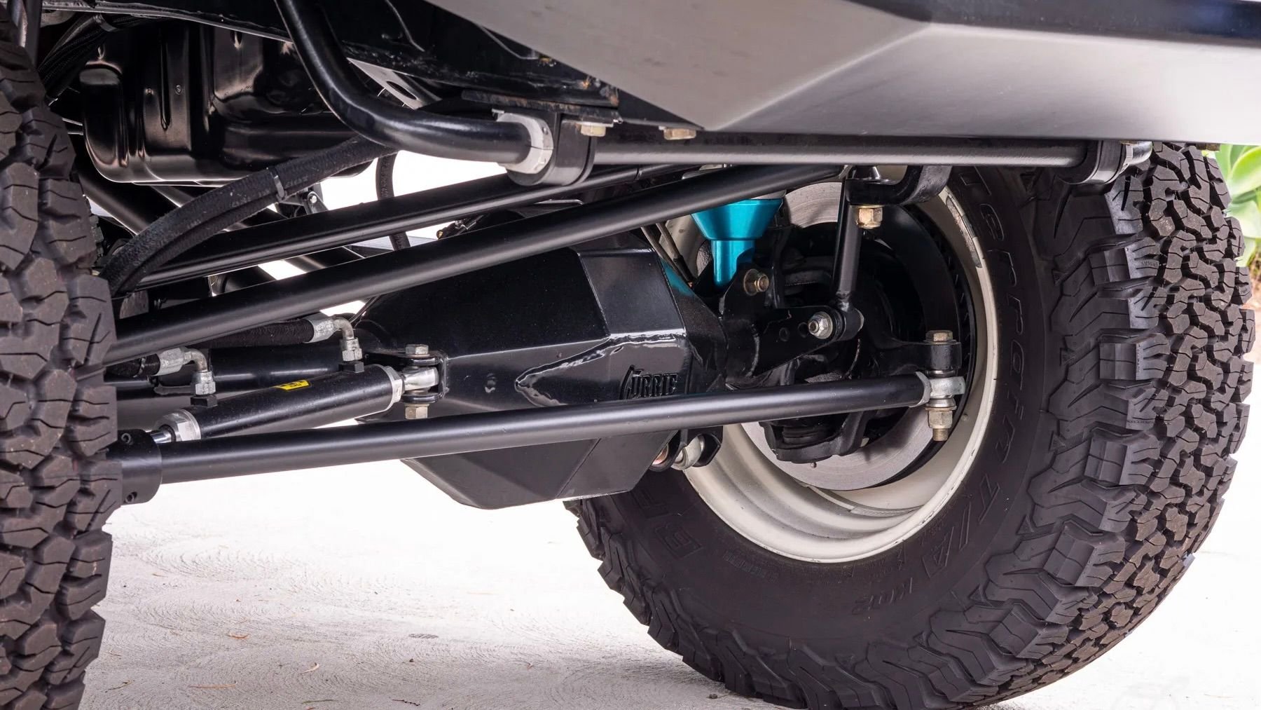 Pop the hood, and you'll find a second-gen 5.0-liter Coyote V8 that's rated to produce 420 horsepower in stock form, but of course, it can also be easily upgraded to churn out far more. That power flows to the wheels via a 4R70W four-speed automatic transmission and an Atlas 2 3.0 ratio two-speed shift-on-the-fly transfer case, along with Spicer drive shafts and u-joints.