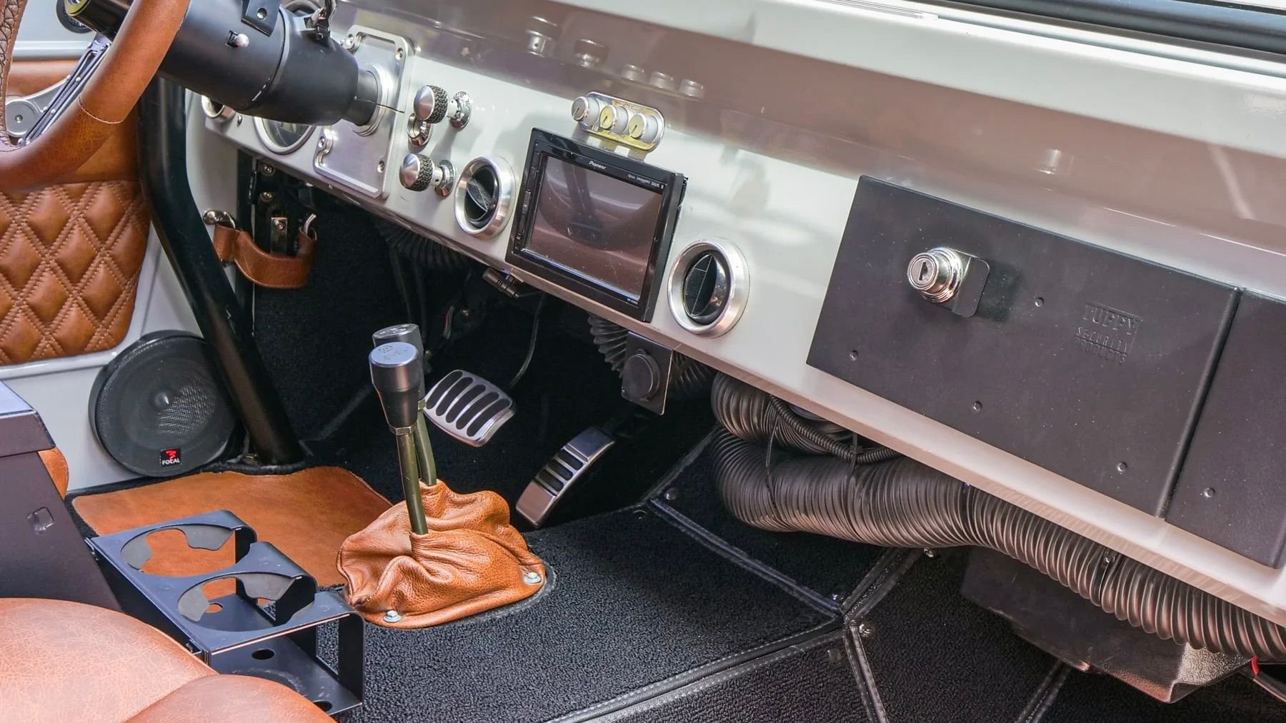 There are plenty of other notable features present inside the cabin, including aircraft sun visors, a restored electric wiper system, and a modern sound system comprised of a Kenwood head unit, a Focal five-channel amplifier, eight 6.5" Focal component speakers, and a RR Woofer underneath the rear seat.