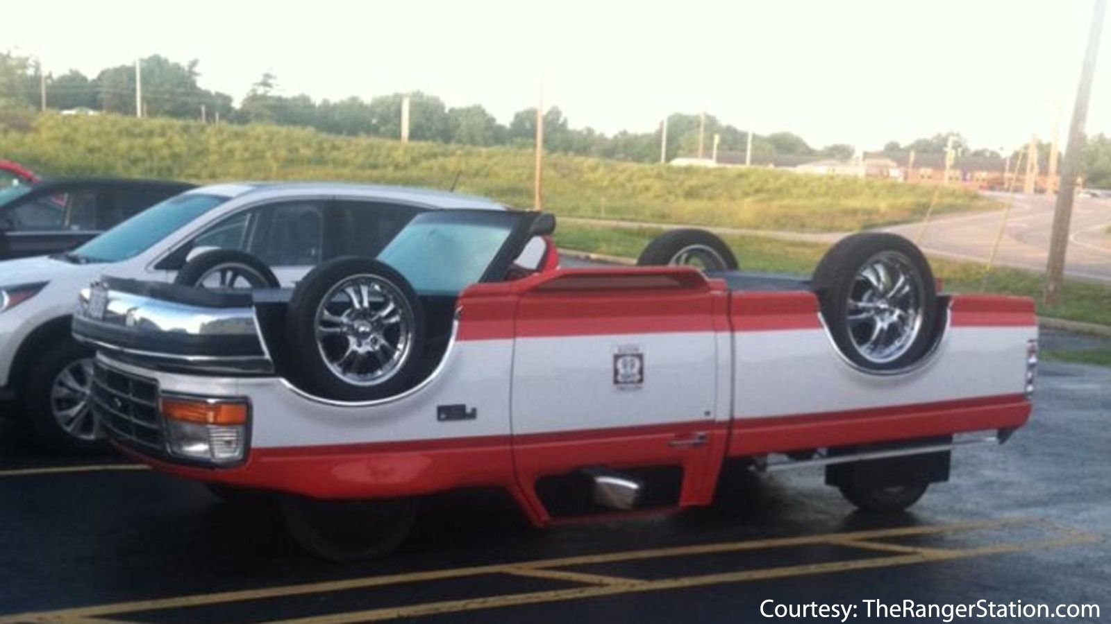 I bet you never thought you would see something like this on the road. This is a Ford Ranger with an upside down F-150 body. Spending six months and $6,000, Rick Sullivan created a Ford that will be the craziest Ford seen on the road. Check out the rest of the story here.