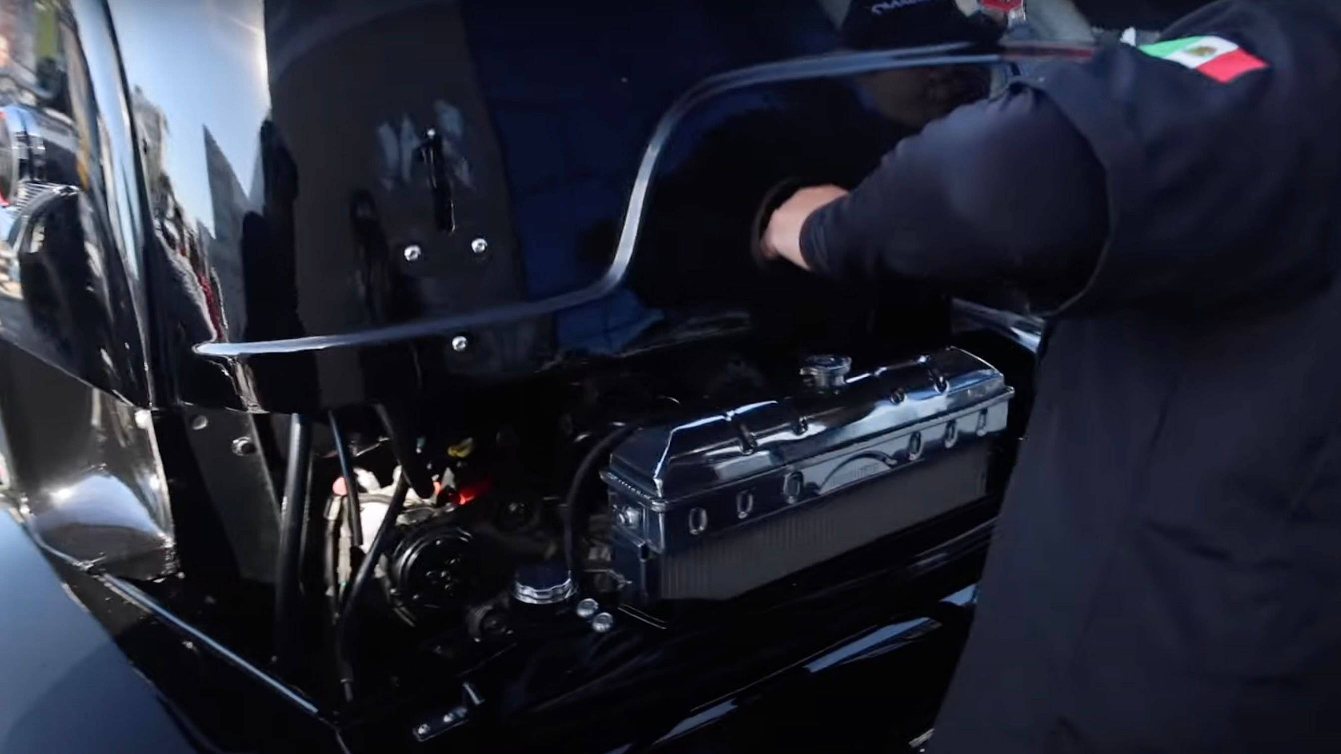 This particular 1956 Ford COE is owned by a fellow named Muniz from Mexico, and it's a truly top-notch build in every conceivable area. After giving us a peek at the stellar engine bay, Muniz goes on to show us the hauler's gorgeous body, which is arrow-straight and covered in shiny black paint.