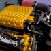 That attention to detail extends under the hood, where a pretty wicked Whipple supercharged powerplant lies. This engine bay looks just as good as the inside and outside of the F1, thanks in part to some engine-turned 24-karat gold that matches candy gold powder-coated suspension parts underneath.