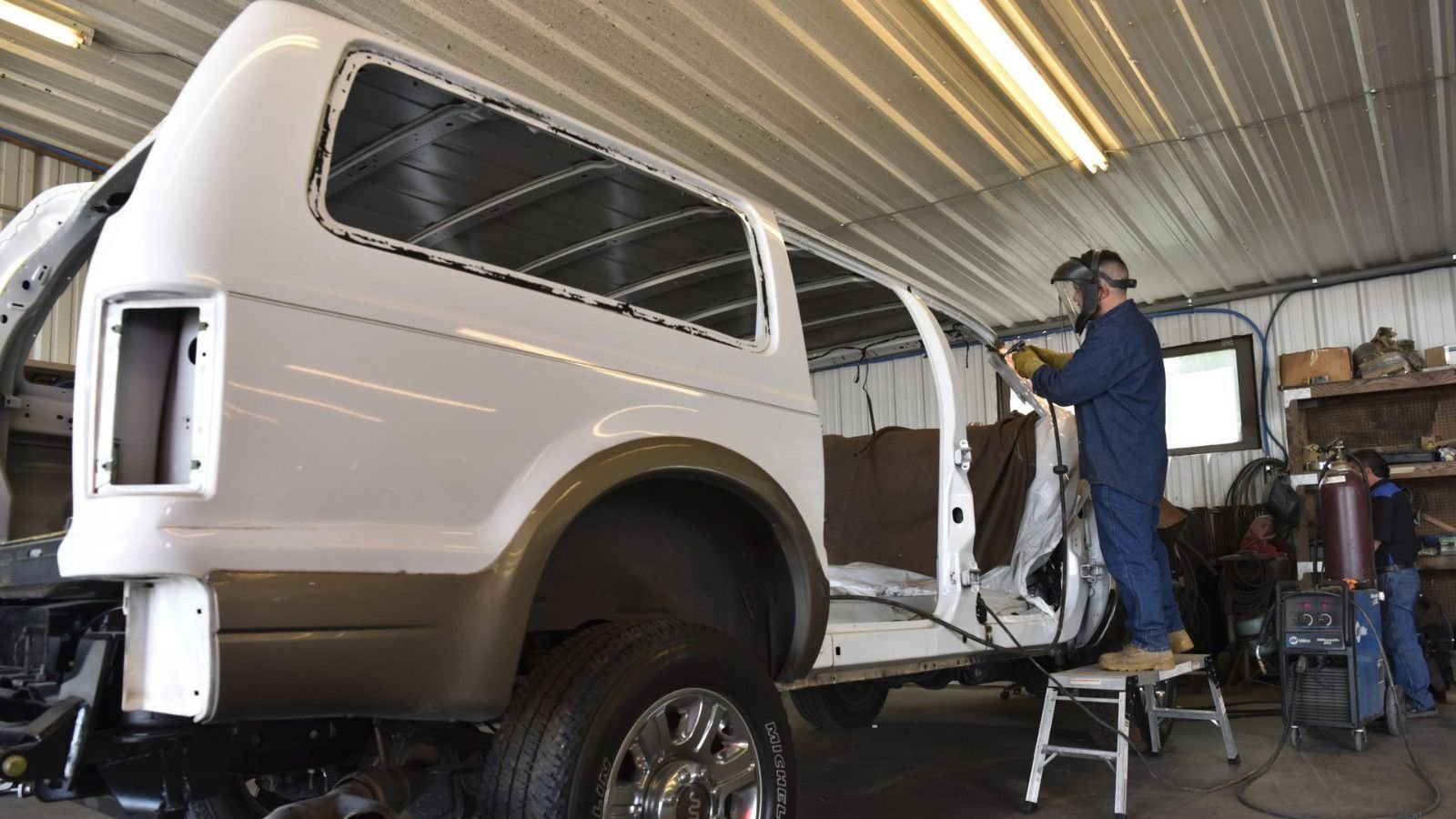 Those who shell-out thousands to restorers like this one, Custom Autos of Guthrie, Oklahoma, are convinced the biggest SUV Ford ever built was ahead of its time. Many of those thoughts are thanks to both it's passenger room and off-road capability. In fact, the nationally-renowned Custom Autos shop builds around 40 Excursions a year by marrying a back end to a newer Super Duty truck chassis.