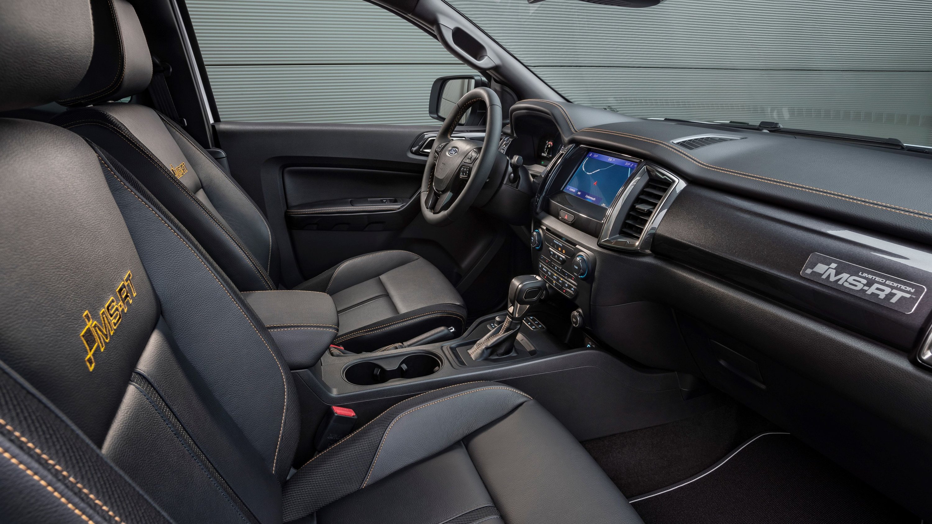 Inside, the Ranger MS-RT has been upgraded with premium leather trim with contrast orange stitching, ambient lighting, heated front seats, and MS-RT detailing on the floor mats and scuff plates, to go along with SYNC 3 connectivity and an 8-inch touchscreen.