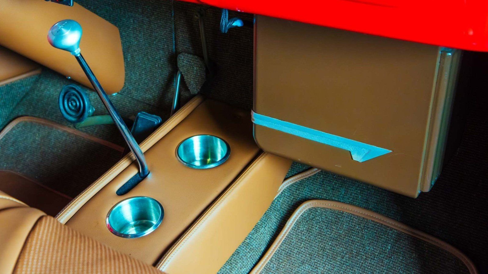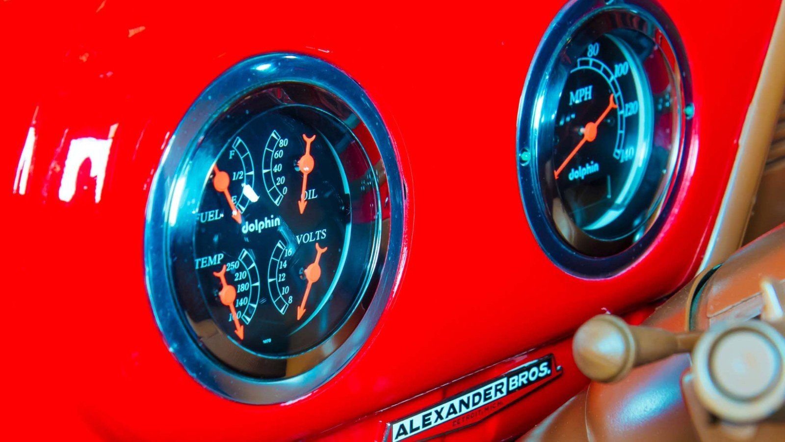 Next, Whetstone painted the running boards and inner grille body color. On the inside, he worked to break up the red by having various interior panels painted to match the camel upholstery. These changes were all pretty minor, but together, they completely transformed the look of the old Ford.