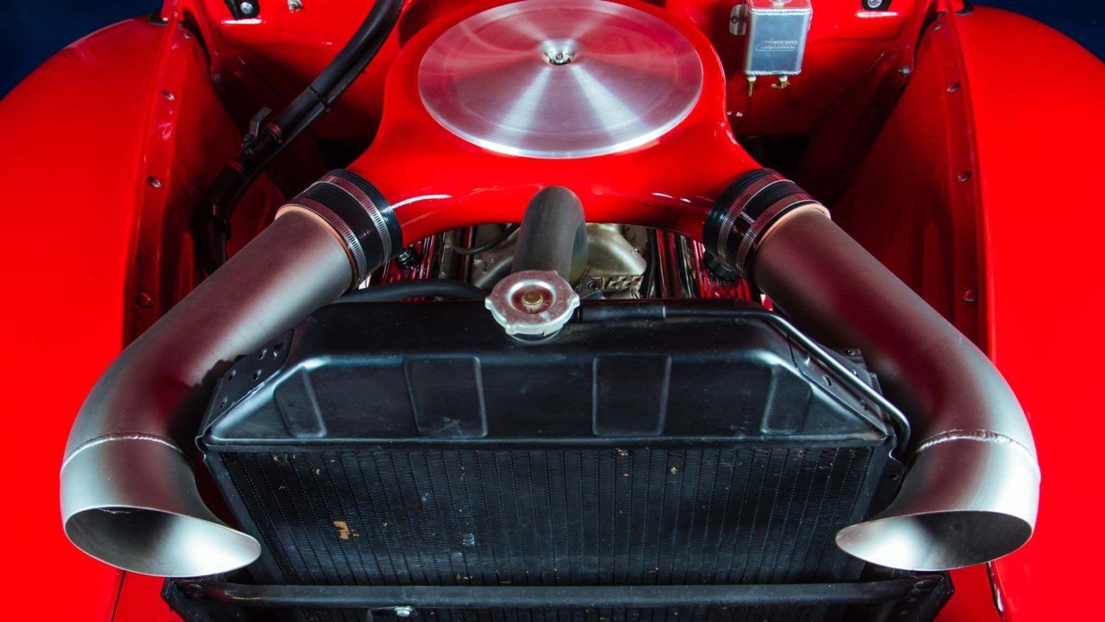 Instead of doing the right thing and switching back to Ford power, Digiovanni stuck with the small block Chevy. He yanked the V8 and bored it out to displace 355 cubic inches, then added Vortech heads and a Holley carb. The "cold-air" intake was custom designed and built by Digiovanni's son.