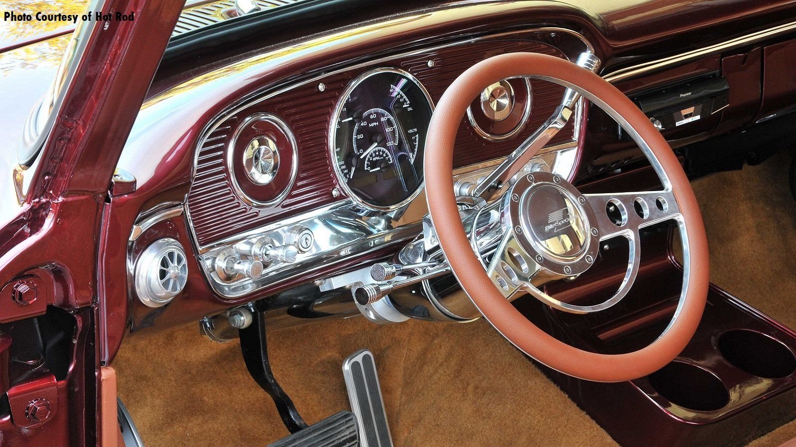 Although sparse, there is some chrome on this build. Riner went with a chrome Summit Racing column and Billet Specialties wheel.