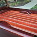 In order to keep things sleek, Riner shaved the side body moldings, windshield washers, and stock emblems. The bed floor was bumped up a foot for clearance and custom tubs were made to accommodate the large wheels. The bed floor is build out of Poplar planks coated in Sedona Red stain and separated by stainless steel strips. While the F-100 still utilizes the stock taillights and tailgate, the rear bumper was removed and replaced with a custom roll pan.