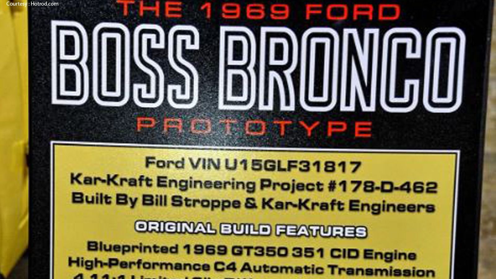 Wes Eisenschenk is an editor at CarTech, which recently published the new book, "Kar-Kraft: Race Cars, Prototypes and Muscle Cars of Ford’s Special Vehicles Activity Program", by Charlie Henry. While doing research for the book, Wes came across the VIN for the only Boss Bronco in existence.
