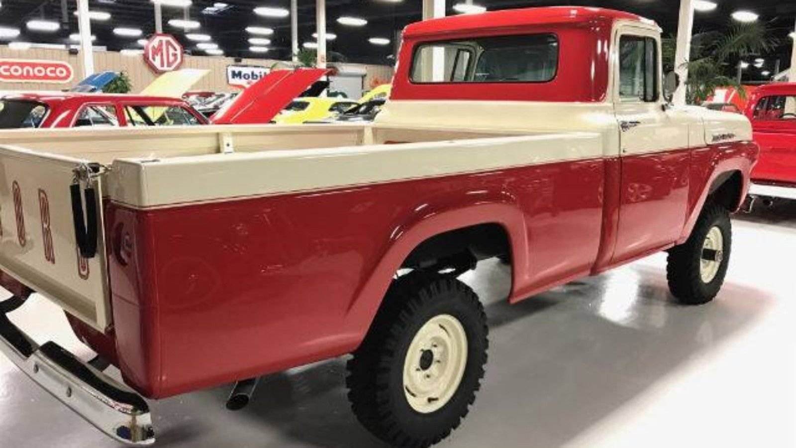 Despite this success, most truck buyers stuck with two-wheel drive until the '70s, when the option started to become more popular. So you certainly don't see many factory 4x4s of an earlier vintage. Especially examples as pristine as this gorgeous red and white '59 F-100.