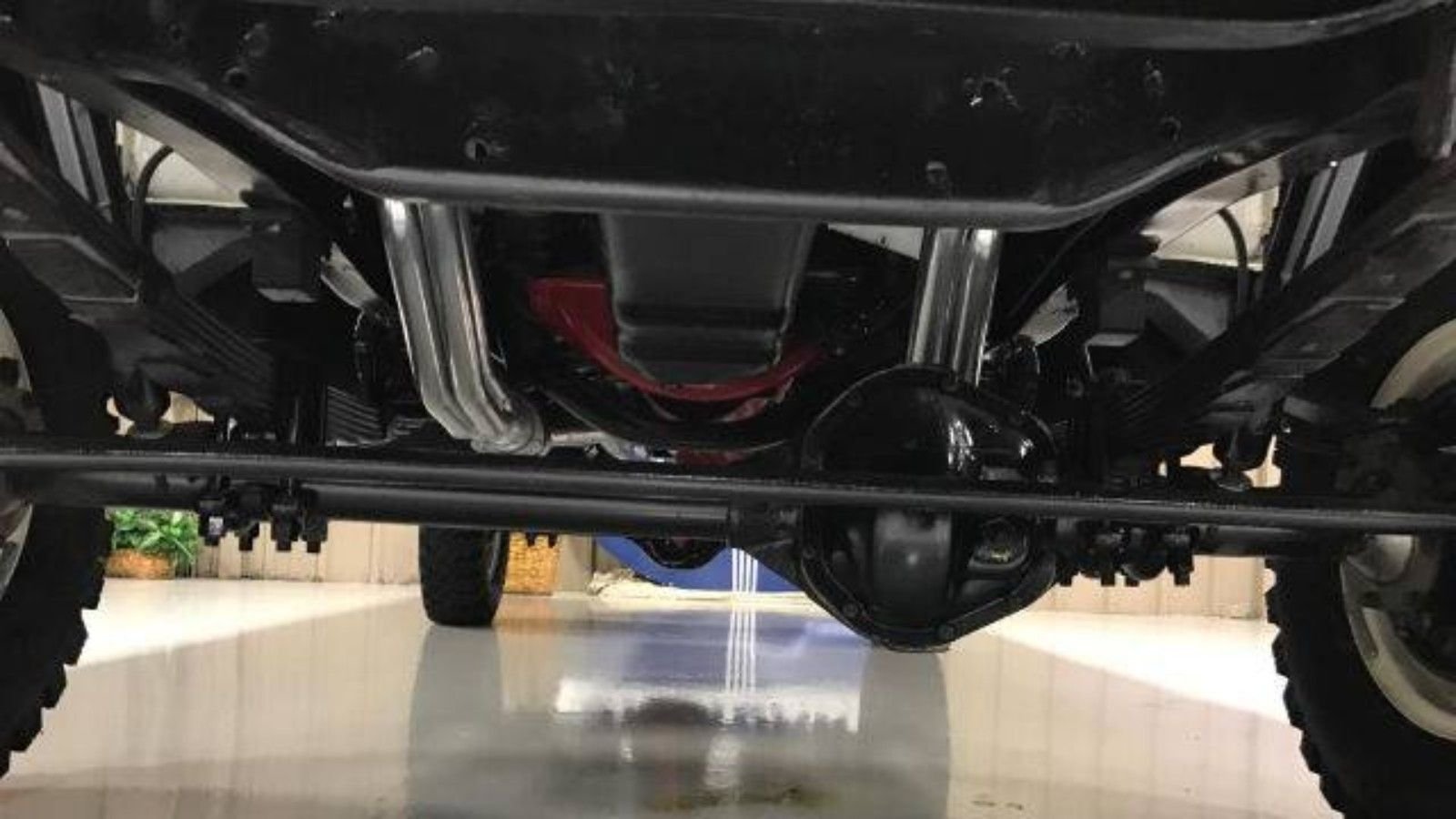 That sends power to a Spicer transfer case, which splits it between a beefy Ford 9-inch rear end and the front diff. Warn lockout hubs offer up a little bit of modern-day convenience and help make this old school four-wheeler handle the rough stuff if you choose to engage in it.